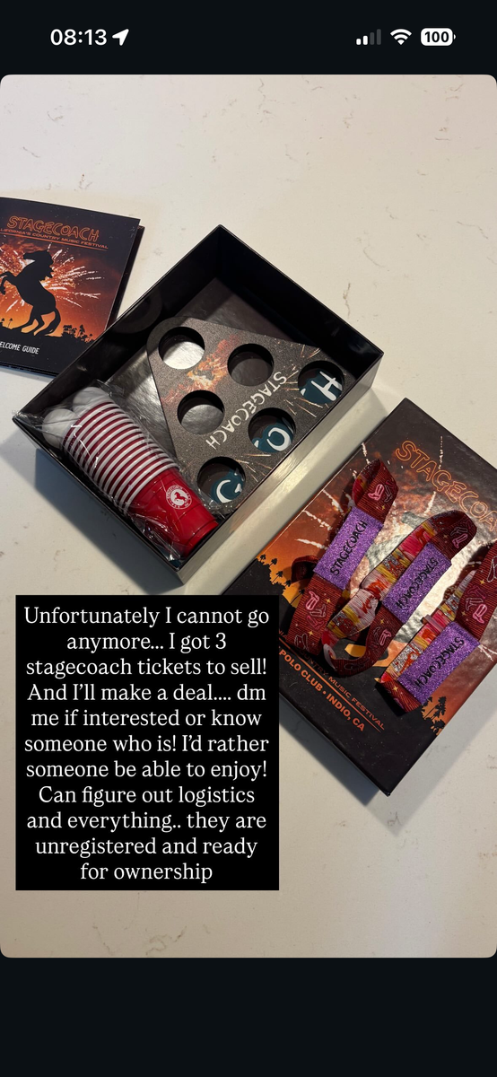 ApplePayunfortunately we can't go anymore so we have stagecoach country festival 3 day GA passes for sale. $519 a piece. Right now they're selling tickets for $619 a piece. cash or Venmo only. FCFS. serious inquiries only, please text- don't message i won't see it