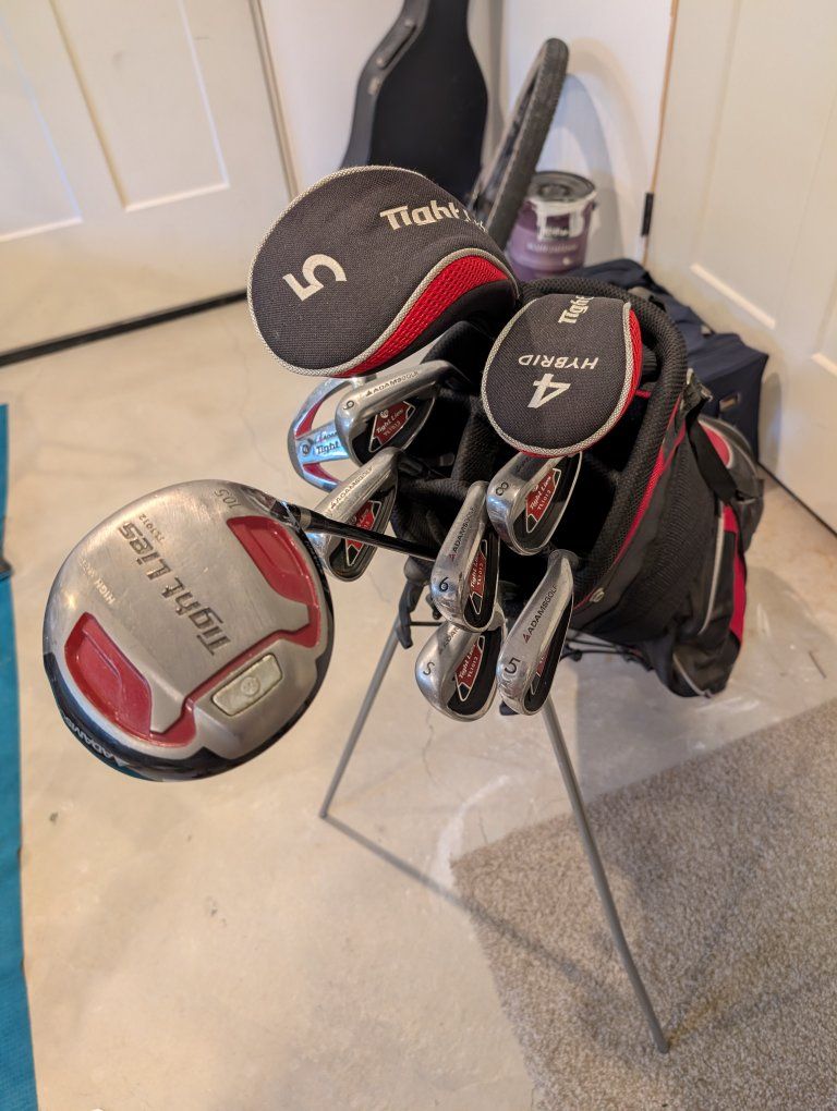 VenmoI've got this used set of Adams Tight Lies clubs. Includes Putter,S,5,6,7,8,9,4hybrid, 5 wood and 10.5 driver. And the bag. great for someone getting into things. Driver is a bit banged up, but still functions.