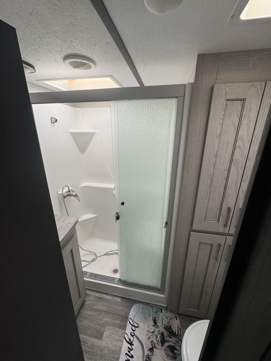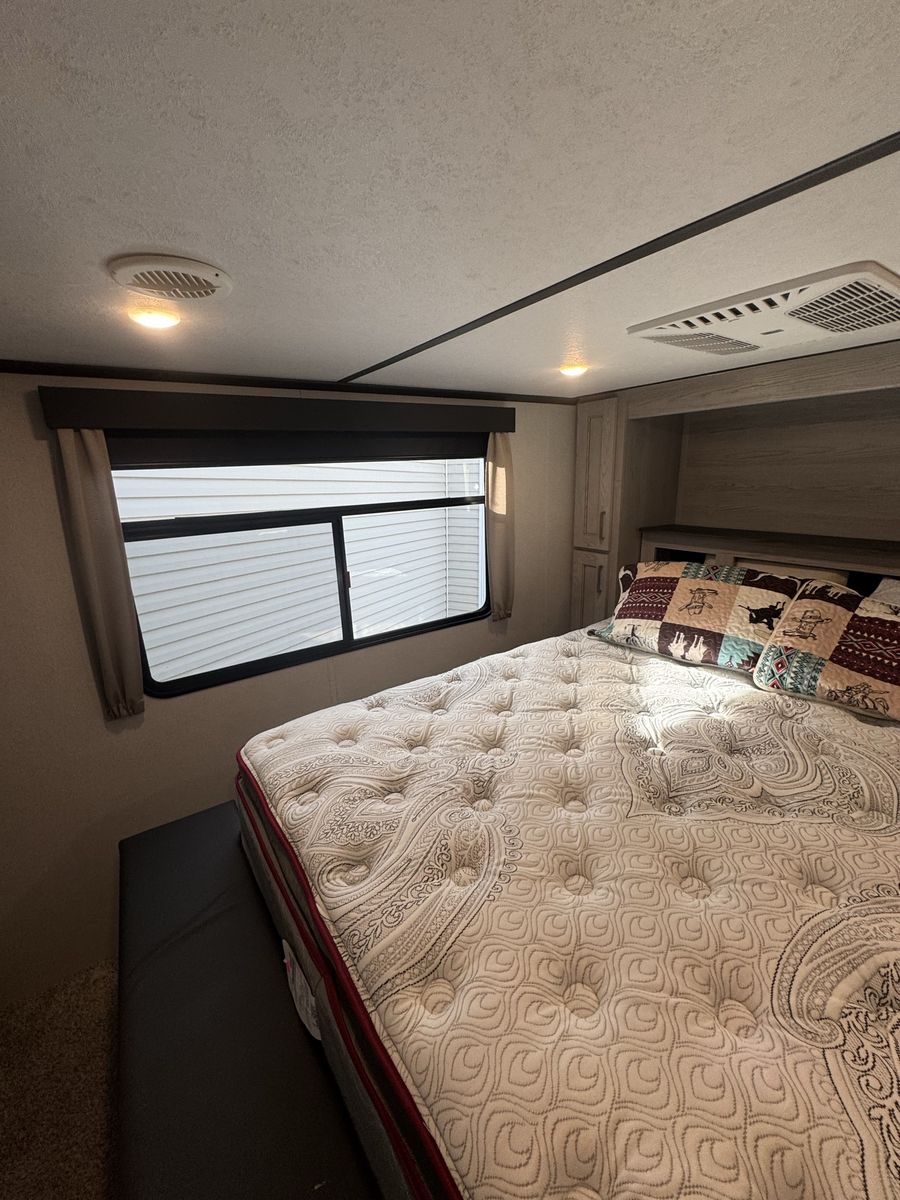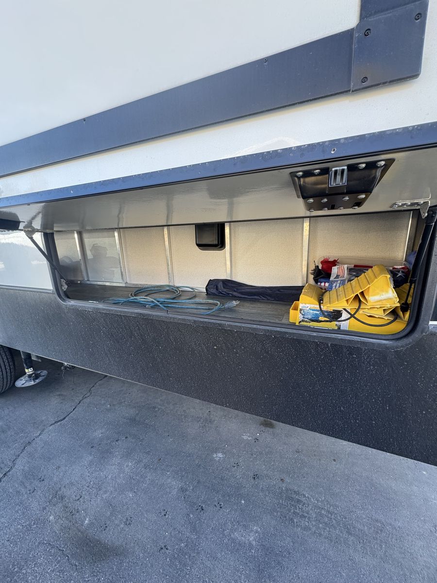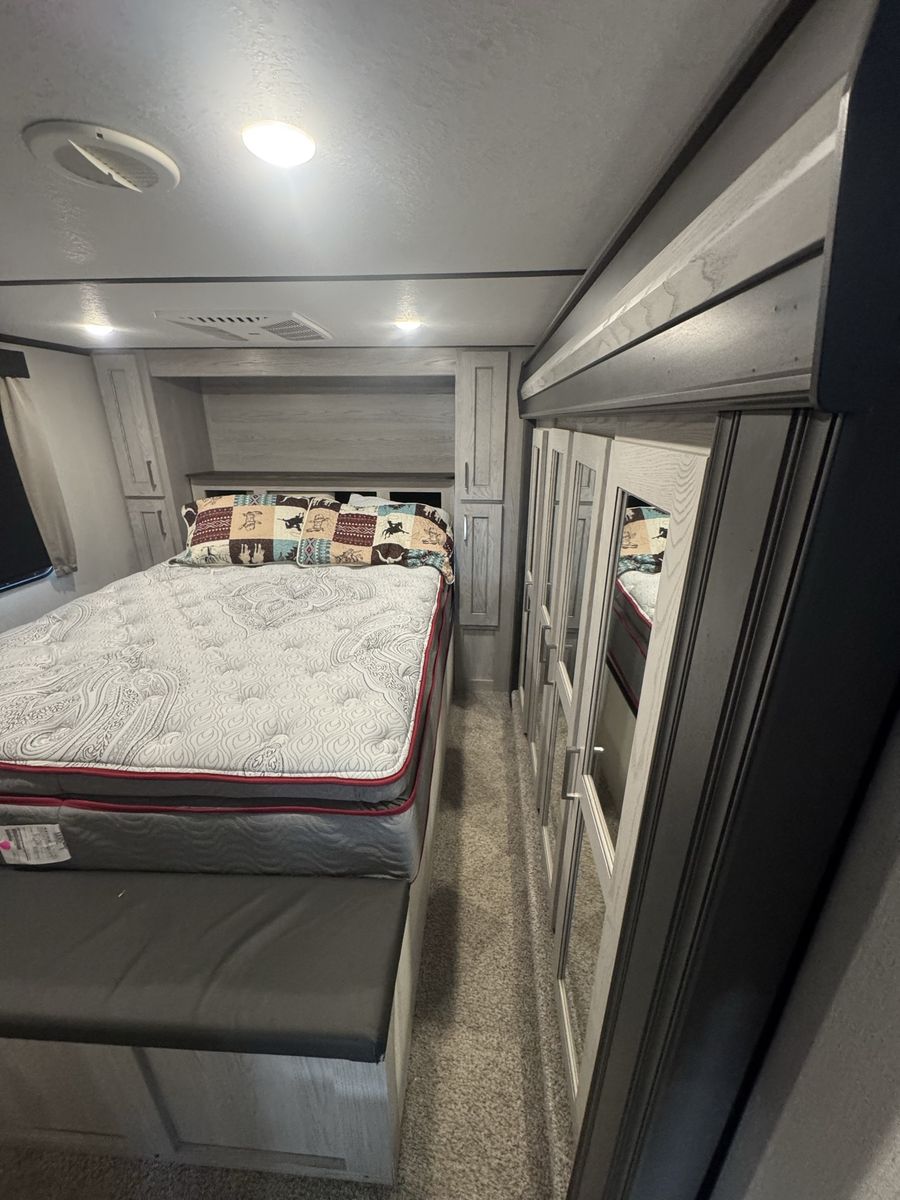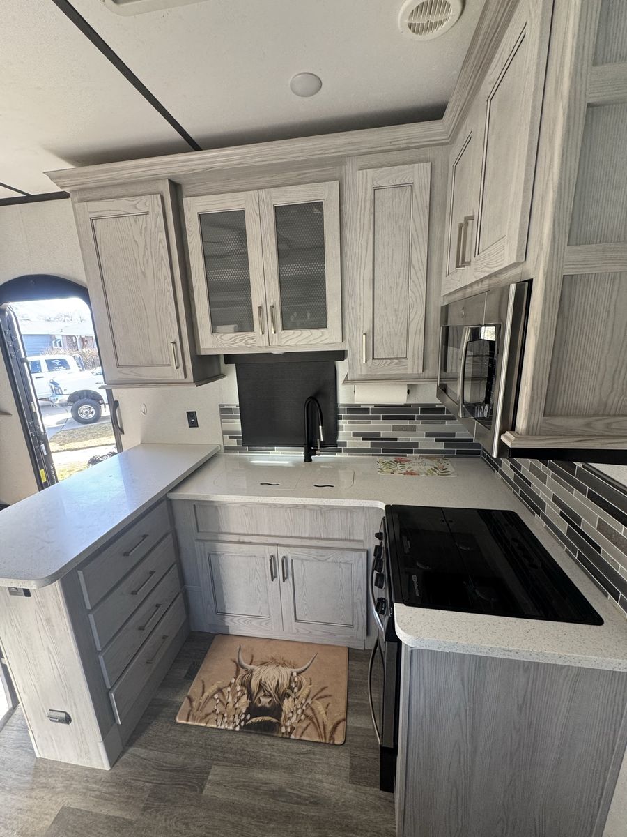 Spacious 2021 Montana High Country RV. Has a great cargo area in the rear with a ramp. Full size stainless steel fridge inside. Lots of storage space. Clean inside and out. Modern interior with wood-look floor and ceiling fan. Road Armor suspension.4 slides this is a must see See Less