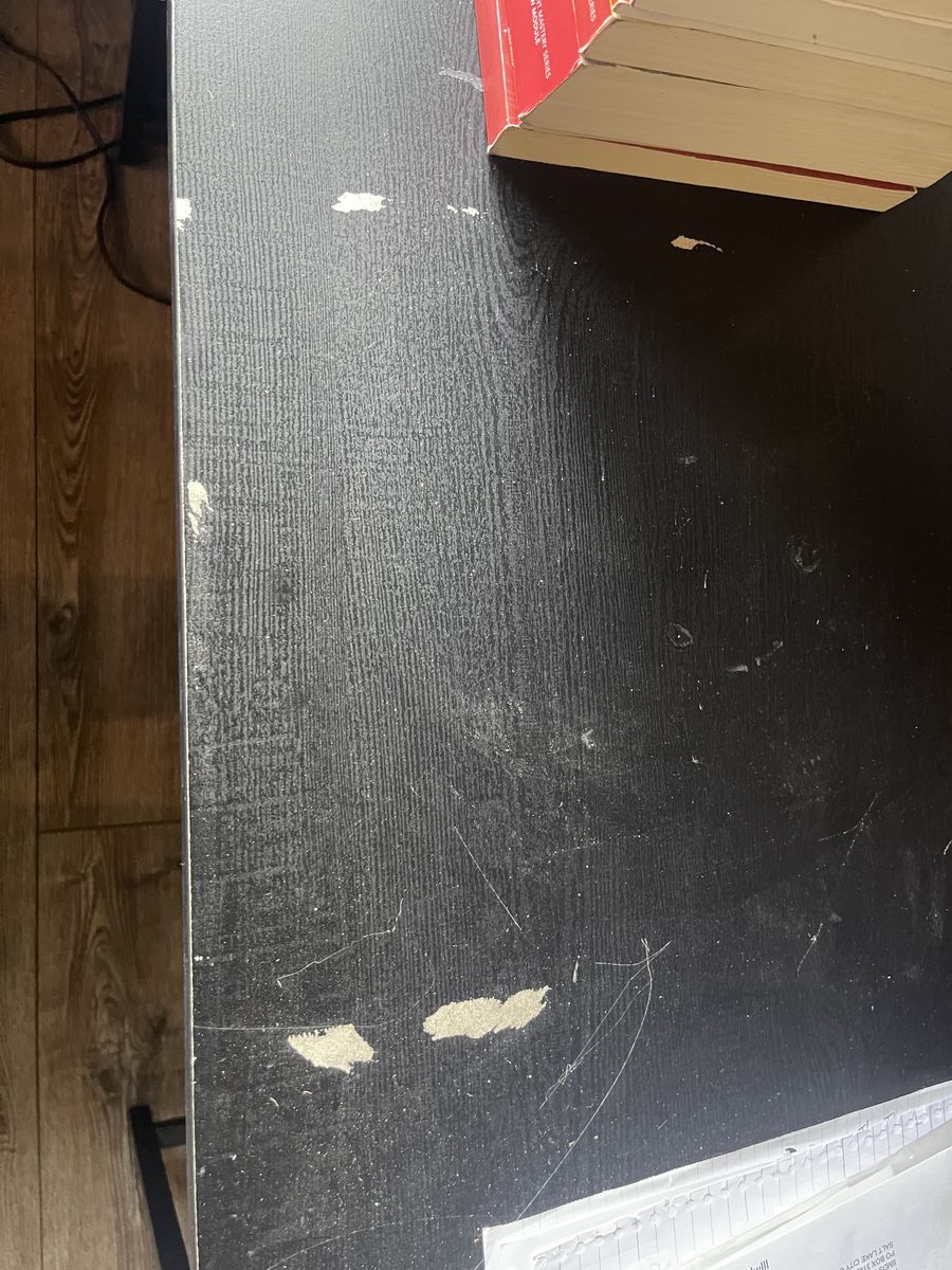 PayPalL shaped desk, has a couple of spots where tape was removed as shown in the picture. Still in good condition. Moving and need gone. Will wipe down, stuff on top not included. Can get better pictures upon request. Located in Highland. $110 OBO