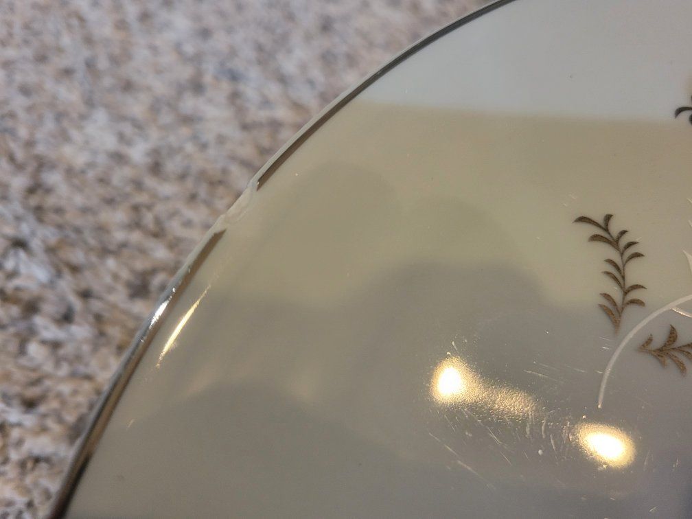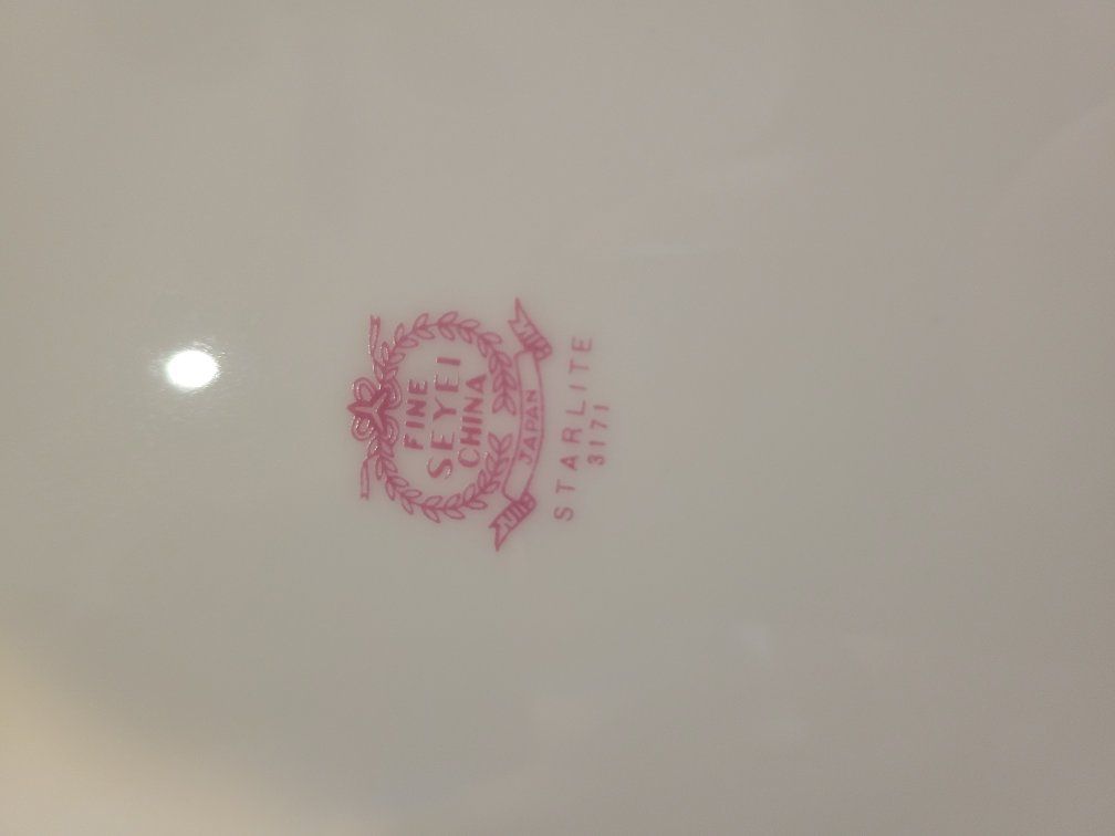 All Pieces are Fine Seyei China Starlite 3171. White Flowers, Platinum Leaves On Gray.
