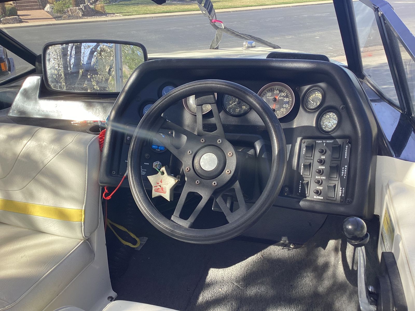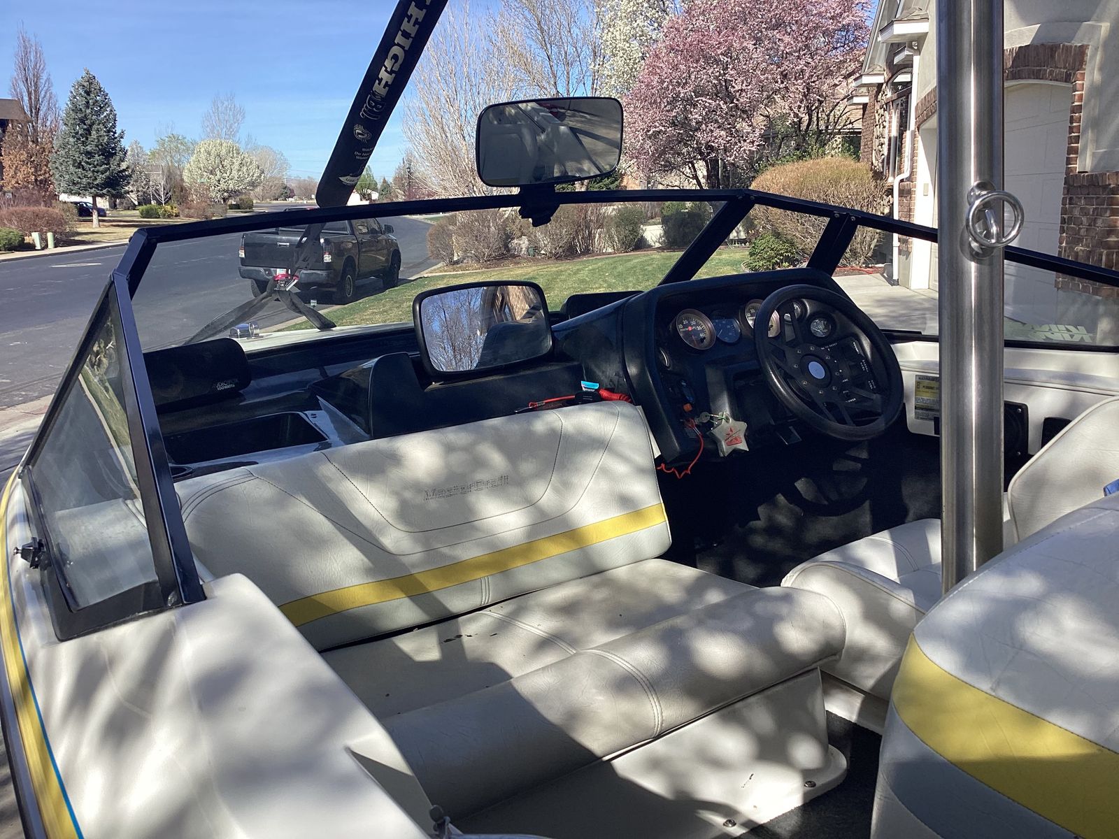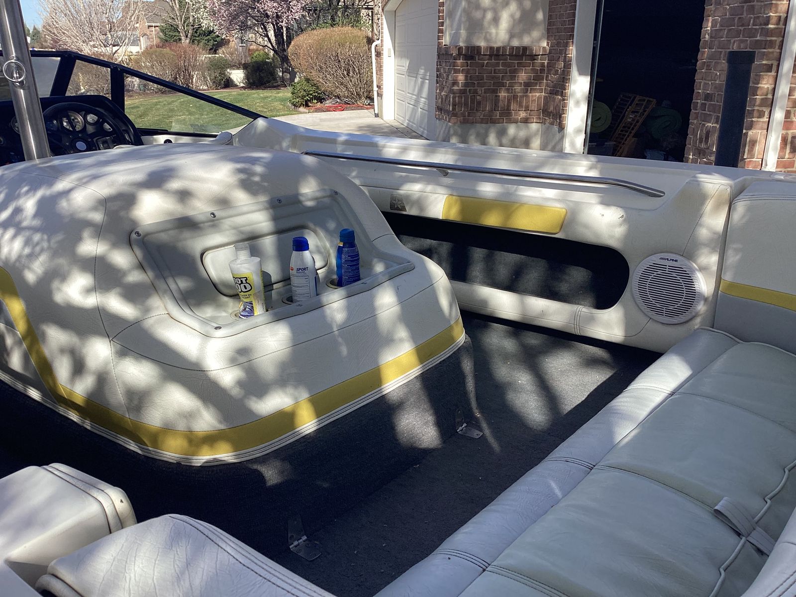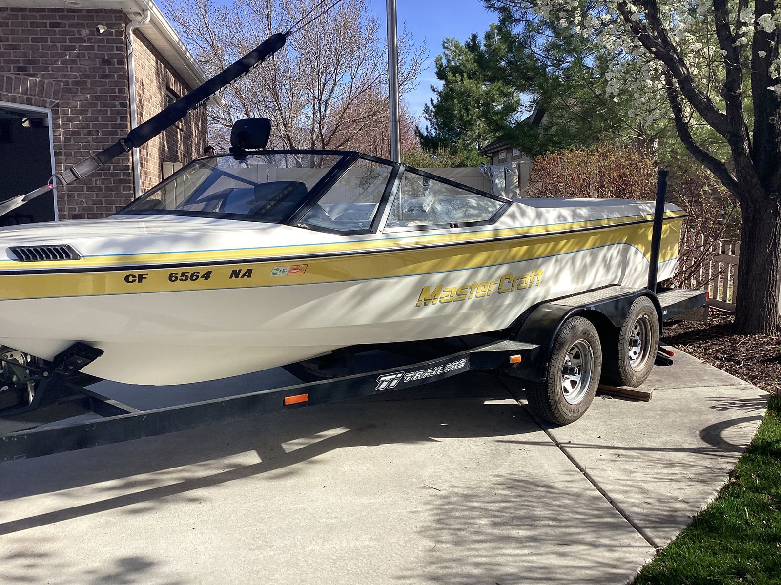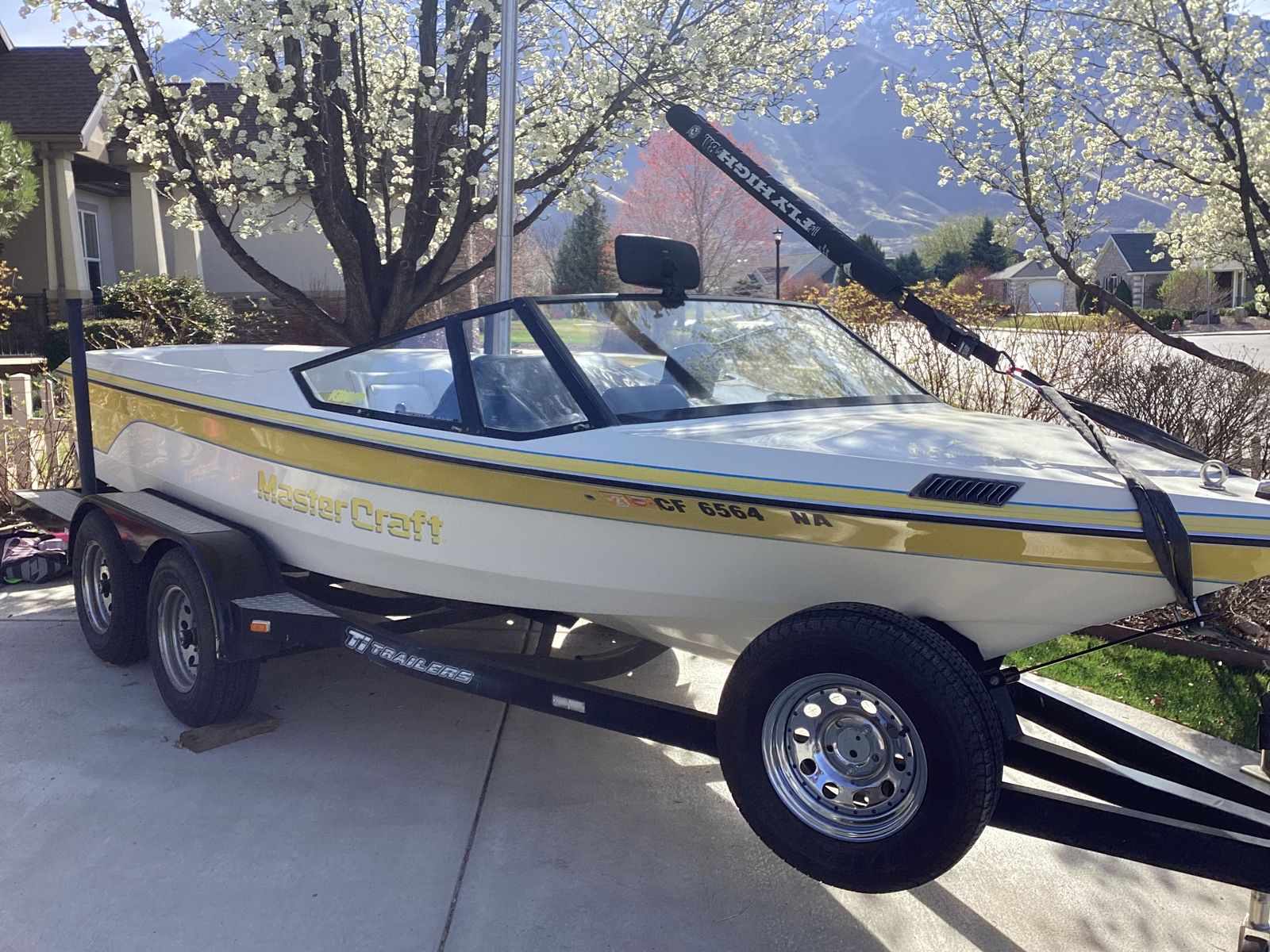 Great waterski boat. Ive owned the boat for about 25 years. Yearly maintenance with oil change and new impelle. Boat comes from CA and did not see water last year. It has all new trailer parts including tires, breaks and master cylinde. Boat has been stored inside or under a canopy for the time Ive owned it. It comes with a fly high tower, barefoot boom, skis, ski vests, ropes, knee board and more. There are some nicks and scratches as it's a 35 year old boat. Supper fun to drive, turns on a dime and come up to speed fast.
