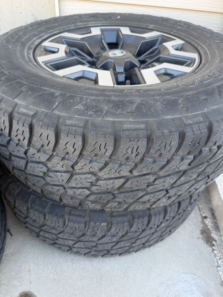 Upgraded my wheels and tires and no longer need the stock set. No tpms sensors in them. Good tread and no scratches on rims.
