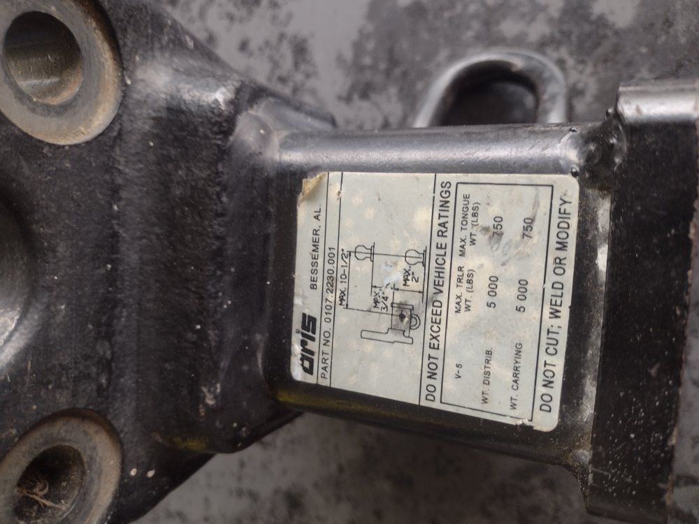 sturdy Oris weight distribution hitch head has part number 0107.2230.001 Max trailer weight is 5000 lb and Max tongue weight is 750 lb for both weight distributing and carrying fits a 2-in receiver.