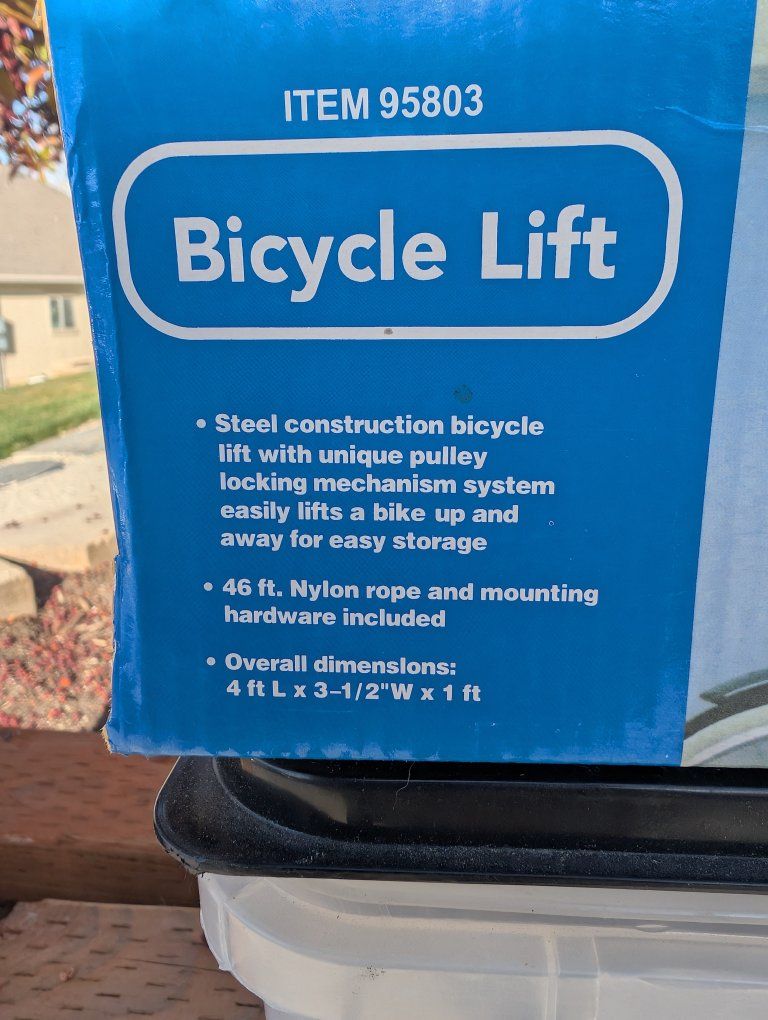 bike rack 25$ kayak roof rack 30$ bike storage pulley kit, 15$ ea dry ground skid w collapsible poles 60$ deal for multiple items