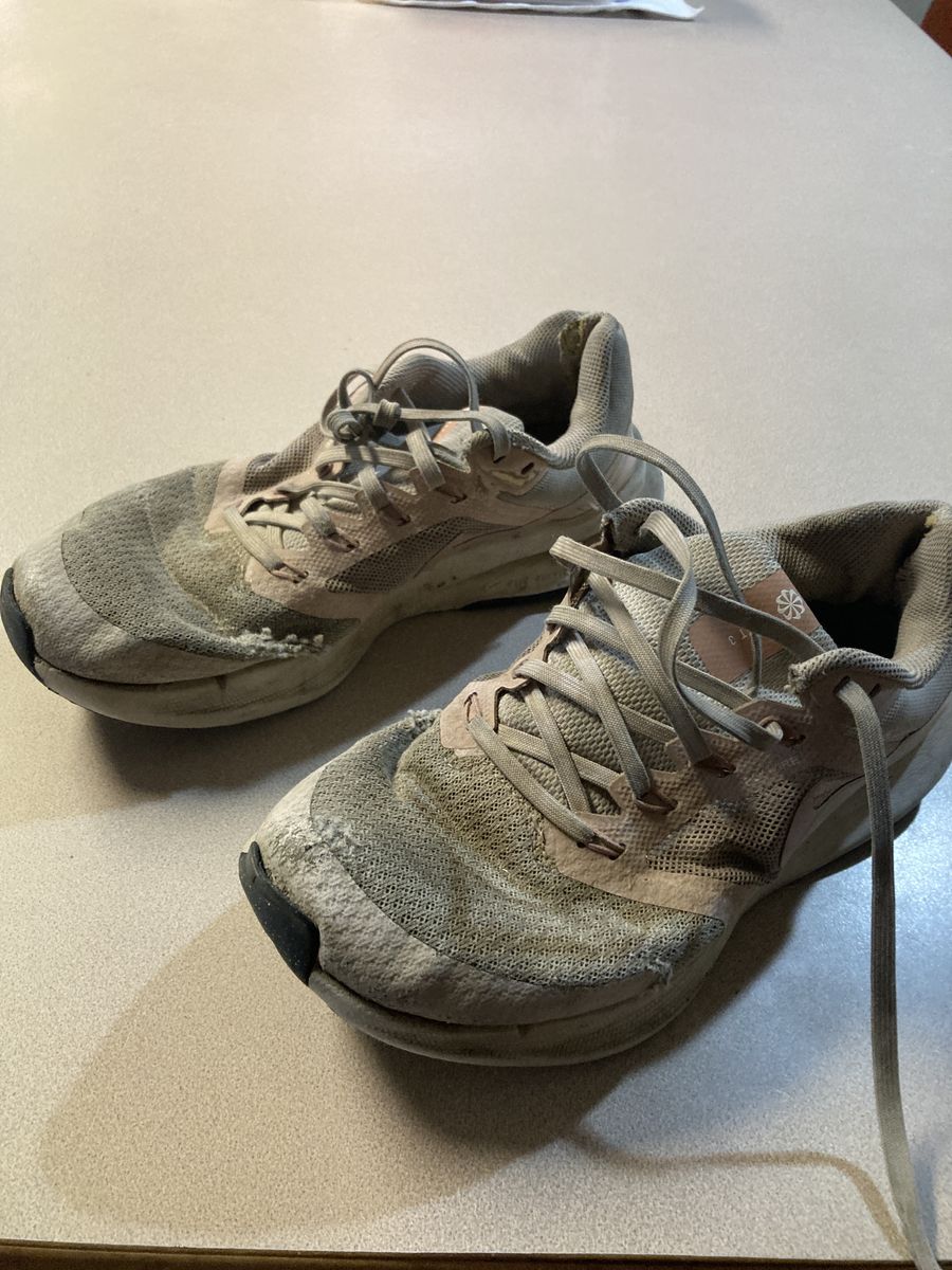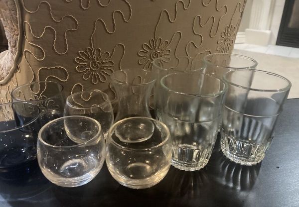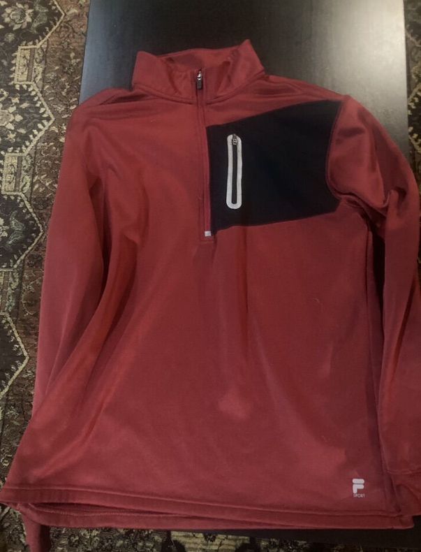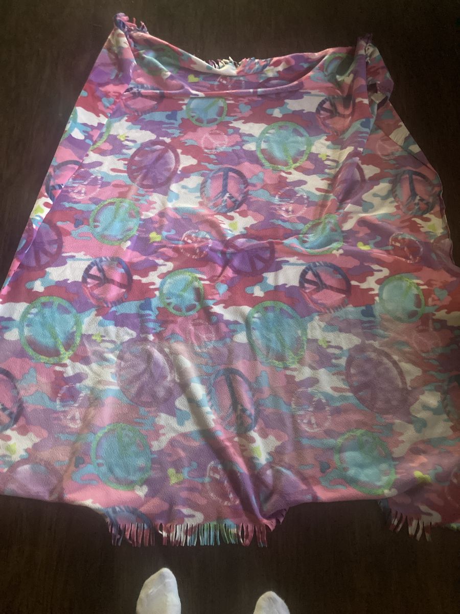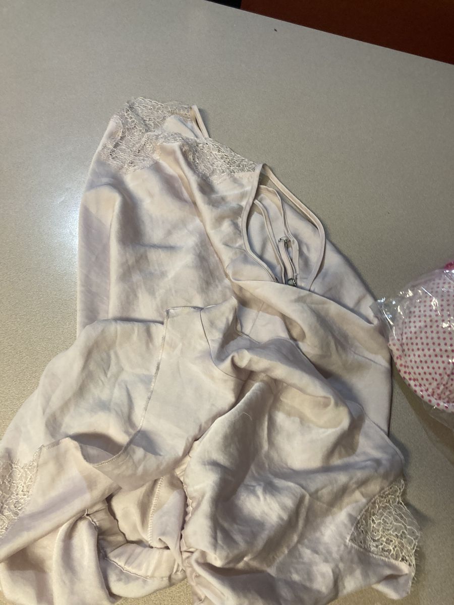 Table cloth with wine labels. Plaid tie up curtains, bag with bird on it, large men’s fila quarter zip. Small women’s pj set, small men’s sweats, asst glassware, Nike sneakers size women’s 8, base, charging bank, throw, stuffed dog, dishwasher detergent, hair clip ,pan, purse