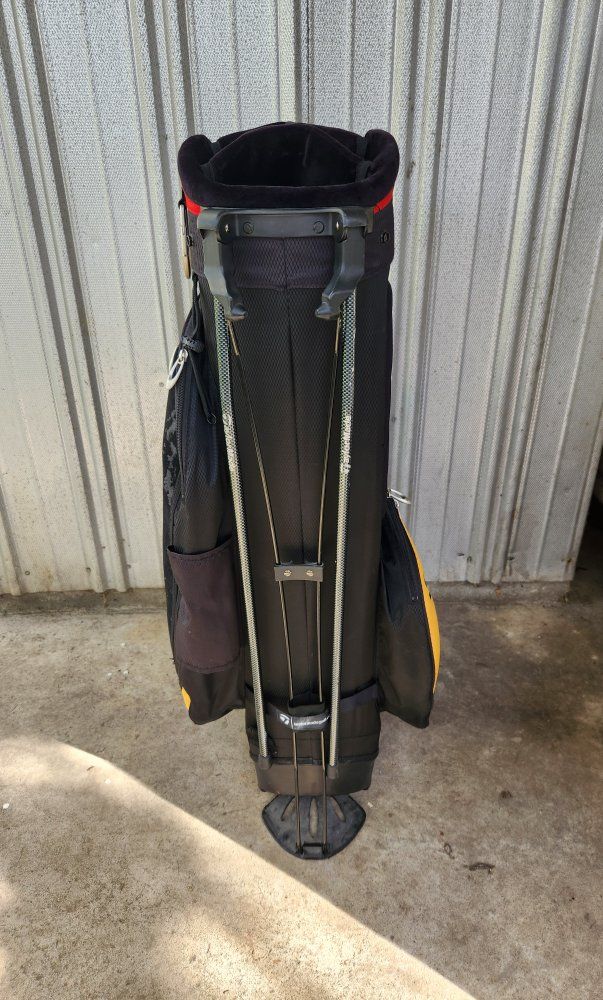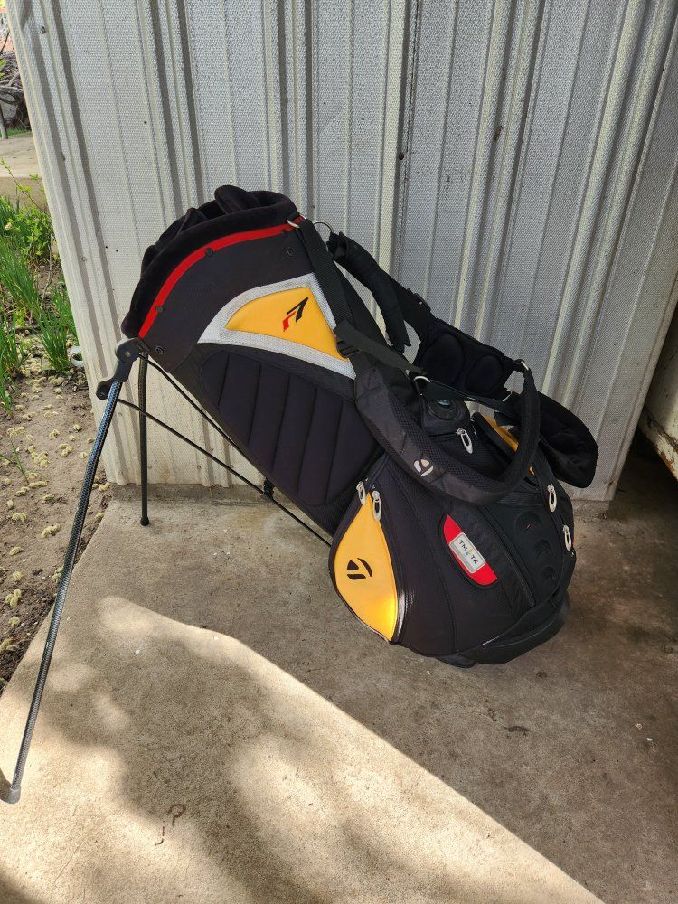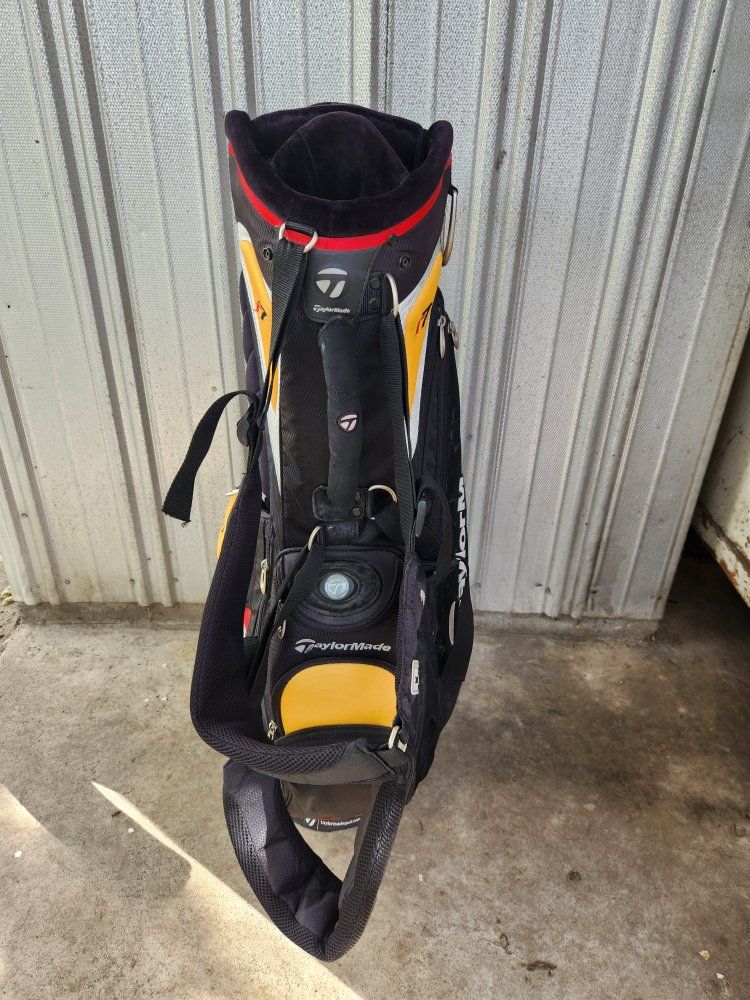 taylormade golf bag w/rain cover 5 hole standing r7 9 zipper pockets shoulder strap zippers all work good condition
