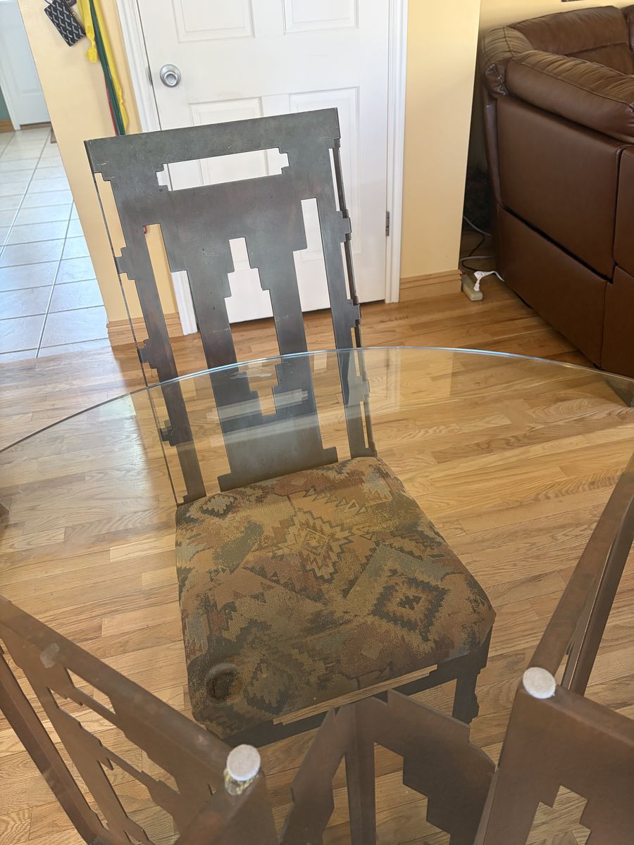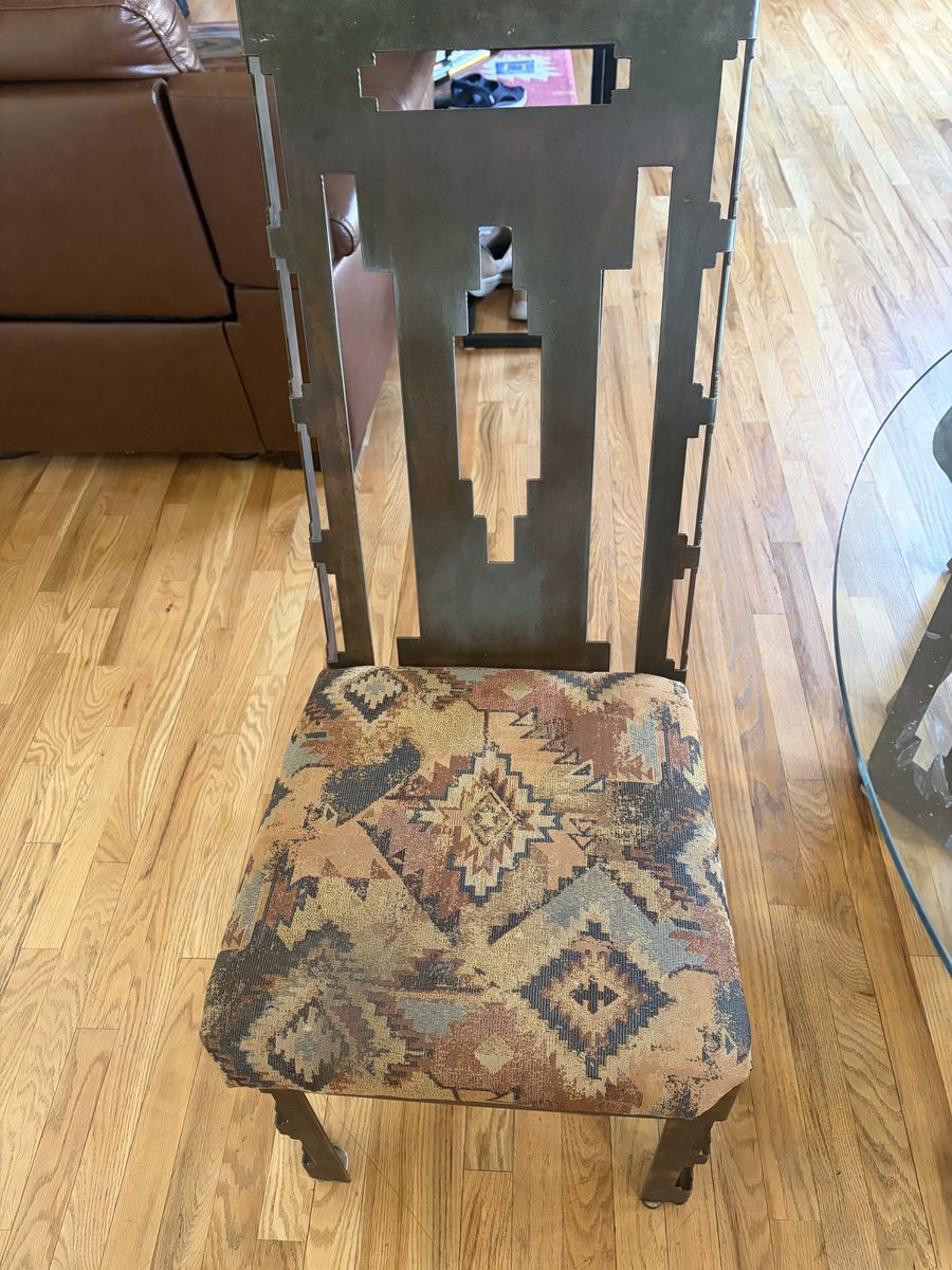 Venmo4 chairs, super high quality metal work, southwest pattern fabric. Non-smoking and no pet household
