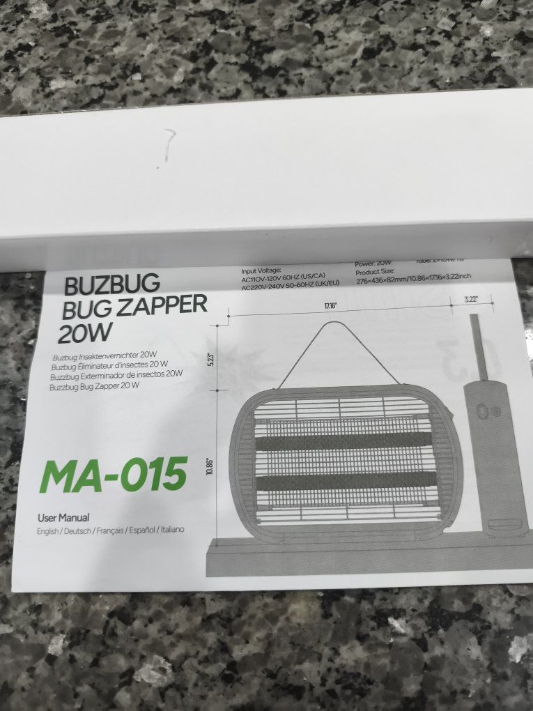 VenmoI have a Buzbug 20W indoor electric mosquito zapper model MA-015 purchased from Amazon for $45 in like new condition. Up to 5000 sq. ft. coverage. Killed a few flies and my dogs got scared of the sound it made when the flies got zapped. Works perfect. Comes with 2 spare lamps and manual.