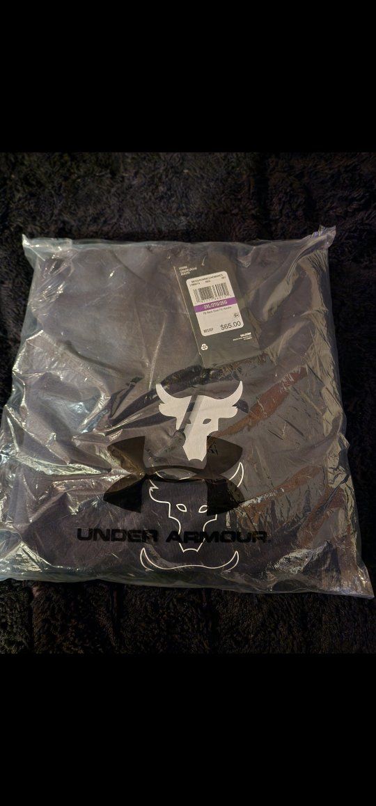 Brand New Under Armour: The Rock Rival Hoodie ( The Rocks Brand) Size: 2XL Asking: $55 OBO. Cash or trades only. Trades if you have any sports/non sports cards, or just let me know what you got. I also have the Joggers that matches. click more from seller. Texts or Messages on here work best to contact me. Thank you for looking. Smoke free home but have dogs