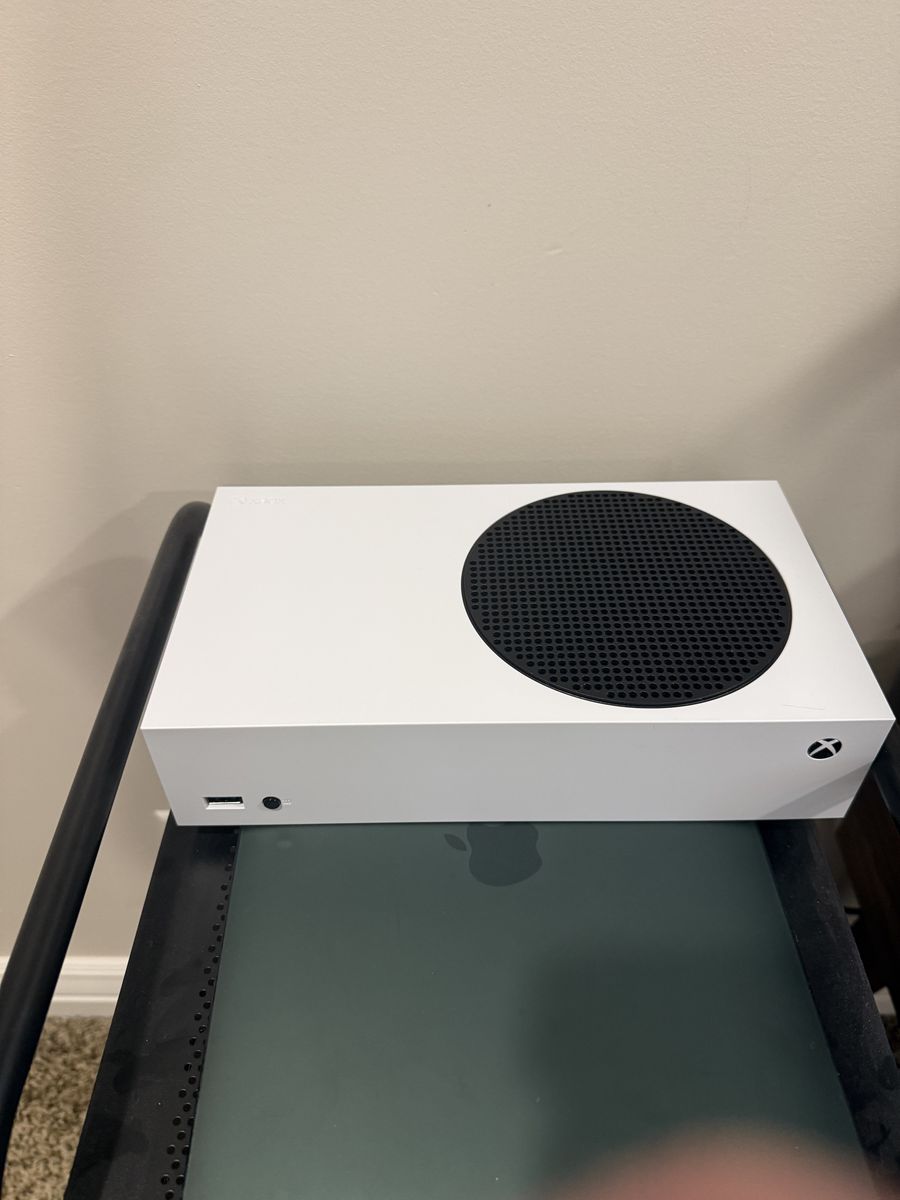ApplePayAwesome Xbox Series S console. Comes with a cool blue controller, power cord, and HDMI cable.