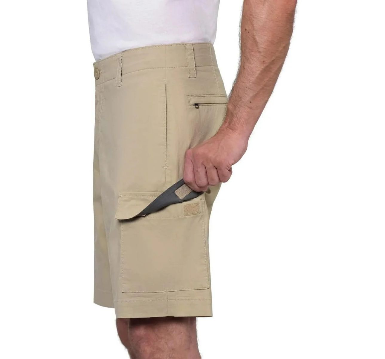 Stay comfortable and adventure-ready in these Men's Stretch Cargo Shorts. Designed with lightweight and breathable fabric, these shorts feature a stretch blend of cotton, nylon, and spandex for maximum flexibility. Whether you're hiking, traveling, or relaxing on the weekend, these men’s utility shorts offer a comfort waistband, mesh-lined pockets, cargo utility pockets, and a zippered back pocket for security. These men’s cargo shorts are a perfect balance of function, comfort, and casual style—ideal for warm weather and active days.
