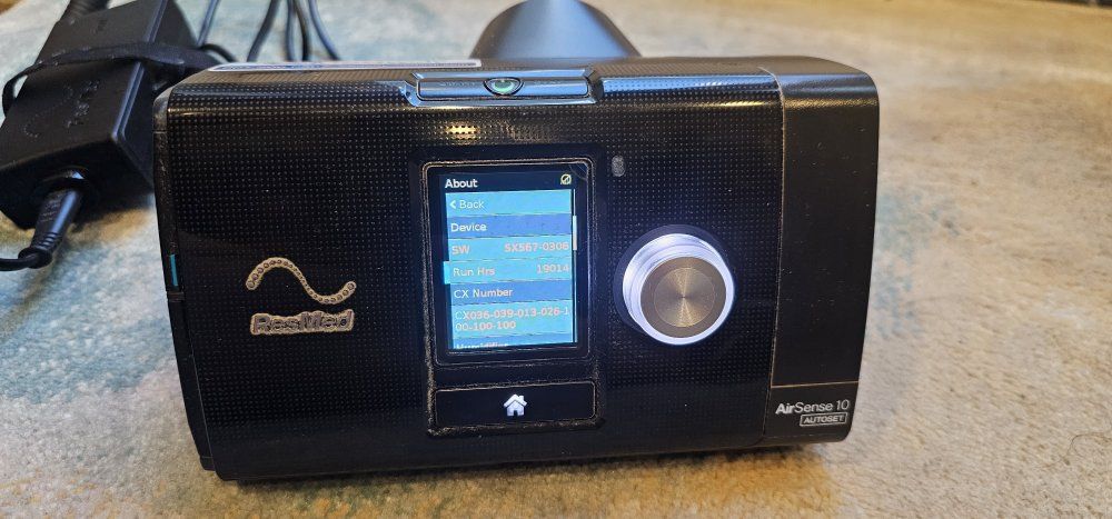 VenmoNice CPAP Machine ResMed AIRSENSE 10 Auto set with humidifier , plug and Extras. (19,014 hours) very clean and works perfectly