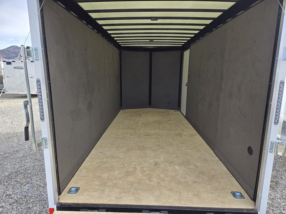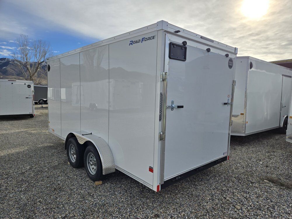 ------------------INCLUDED UPGRADES----------------- ROAD FORCE MODEL RFV716T2 7 FT INTERIOR HT. **.080 ALUMINUM EXTERIOR ** SCREWLESS EXTERIOR, HYDRACORE WATERPROOF INTERIOR WALL LINER (( Stronger, clearer and more water resistant )) *TRANSLUCENT ROOF (( Stronger than Aluninum, allowing just enough natural light inside )) RHINO LINED FRAME ON FRAME FENDERS AND REAR HOOP, 16IN ON CENTER FRAME ON WALL, FLOOR AND ROOF, 3/4 INCH PLEXCORE DECKING (( SUPERIOR TO PLYWOOD )) 2- INTERIOR LED LIGHTS WITH WALL SWITCH, 4X 5000# RECESSED D-RING TIE DOWNS, TANDOM AXLES,7OOO# GVWR, -----------------STANDARD FEATURES-------------------- V FRONT DESIGN, BRAKES ON ALL WHEELS, RADIAL TIRES, EZ LUBE HUBS, AND MORE... WITH HYDRACORE WALL LINER, TRANSLUCENT ROOF, .080 POLYCORE ALUMINUM EXTERIOR AND STANDARD ROAD FORCE FEATURES, PLUS A GREAT PRICE, WHY SETTLE FOR ANYTHING LESS.