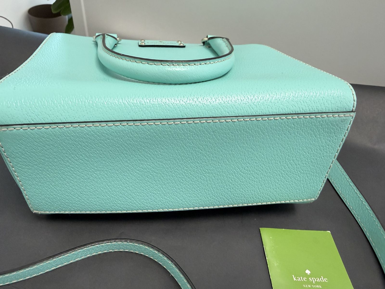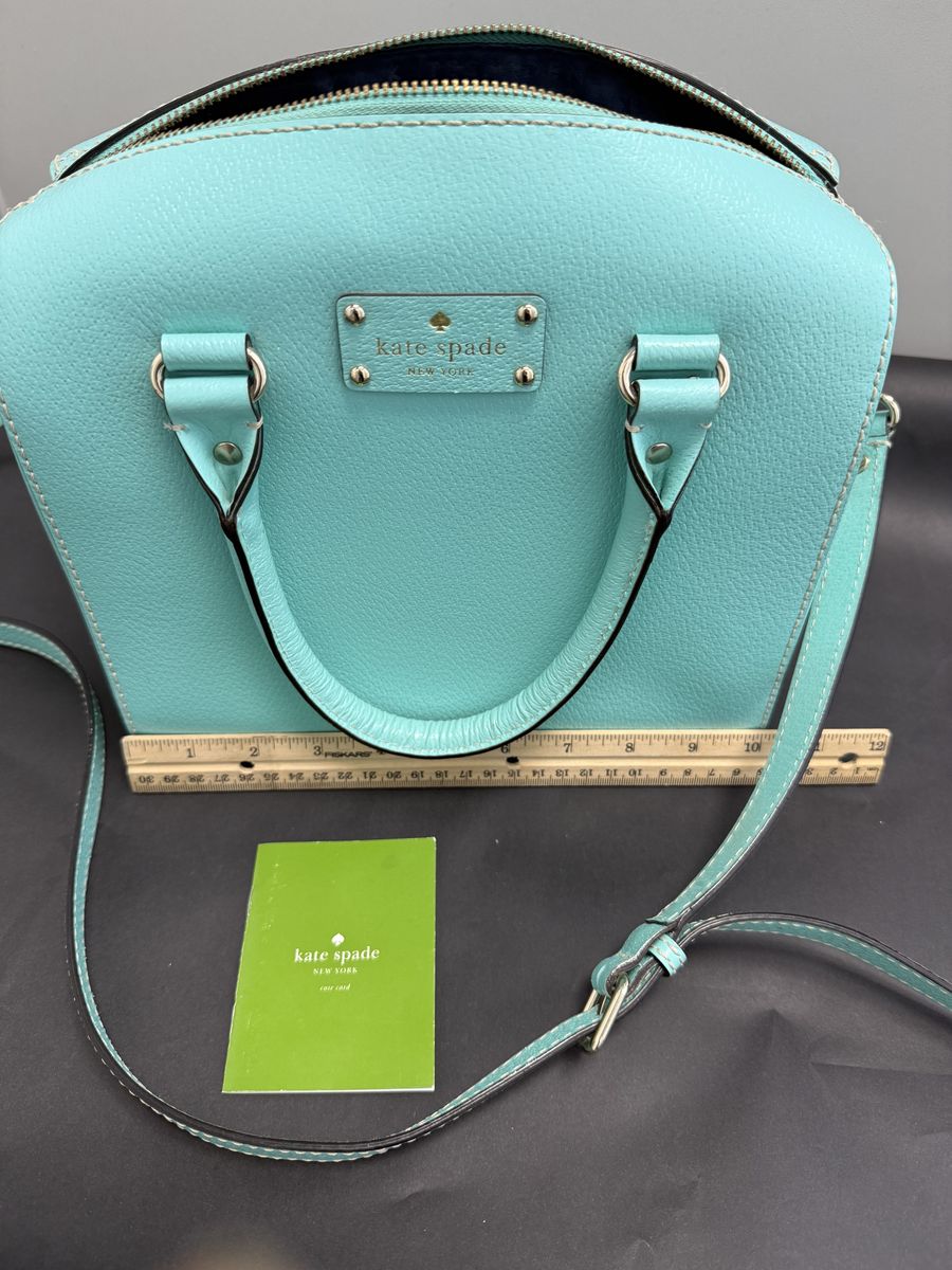 VenmoAdd a pop of color with this authentic Kate Spade Wellesley Alessa Satchel in a stunning Tiffany-inspired Robin’s Egg Blue. This structured, medium-sized bag is crafted from durable pebbled leather and keeps its shape while holding all your essentials.