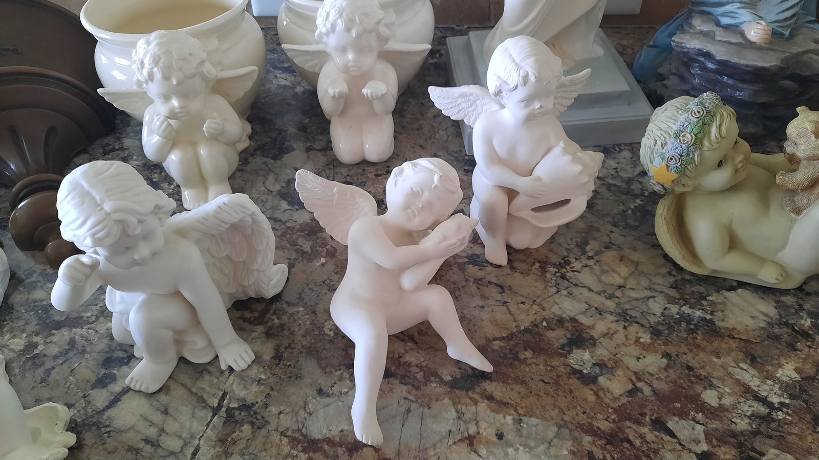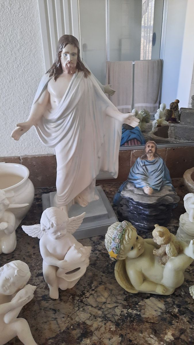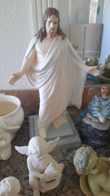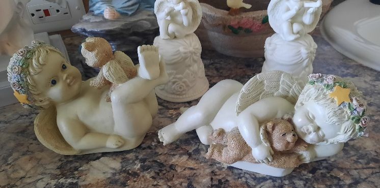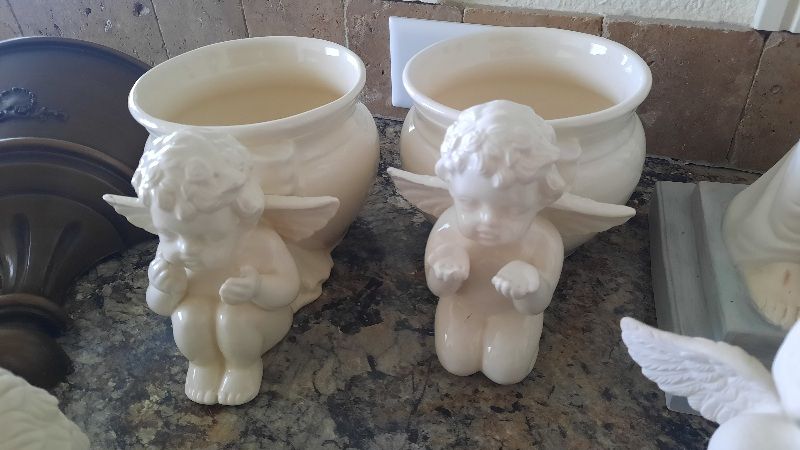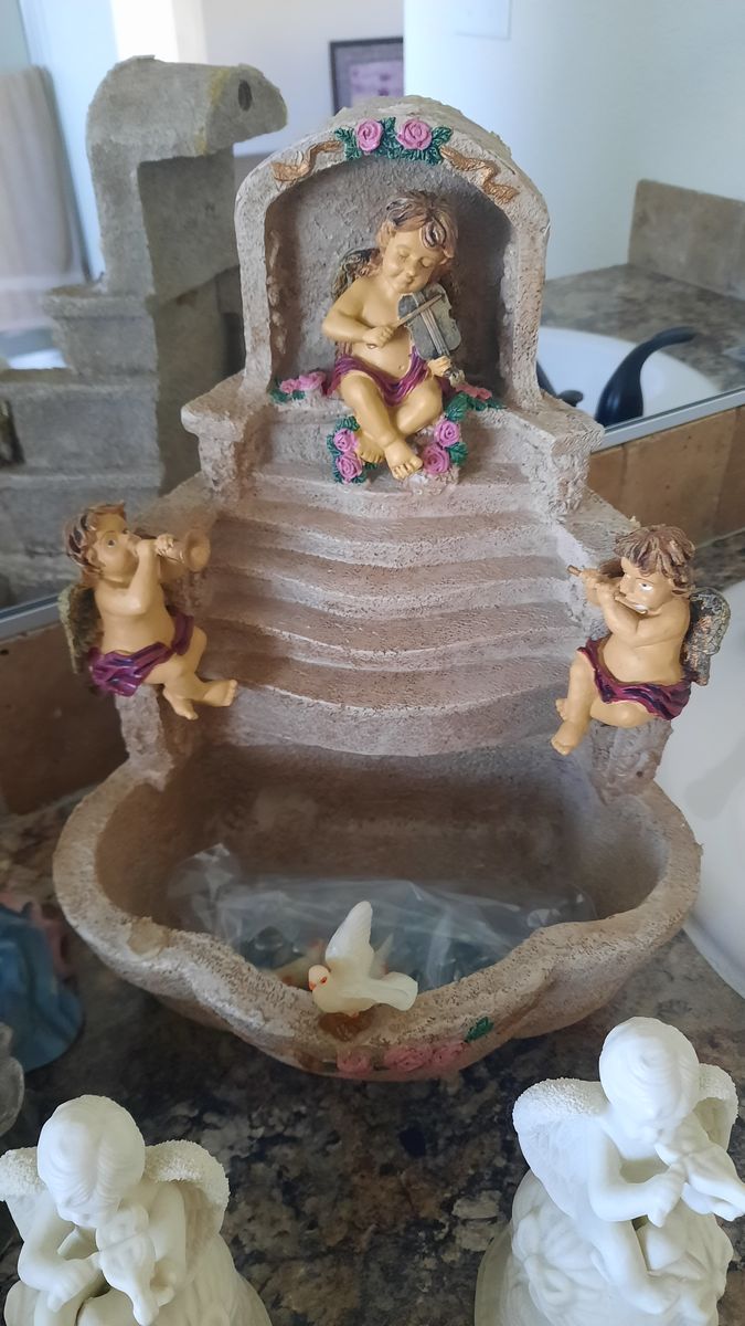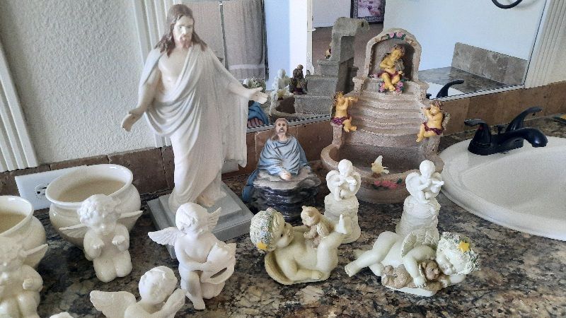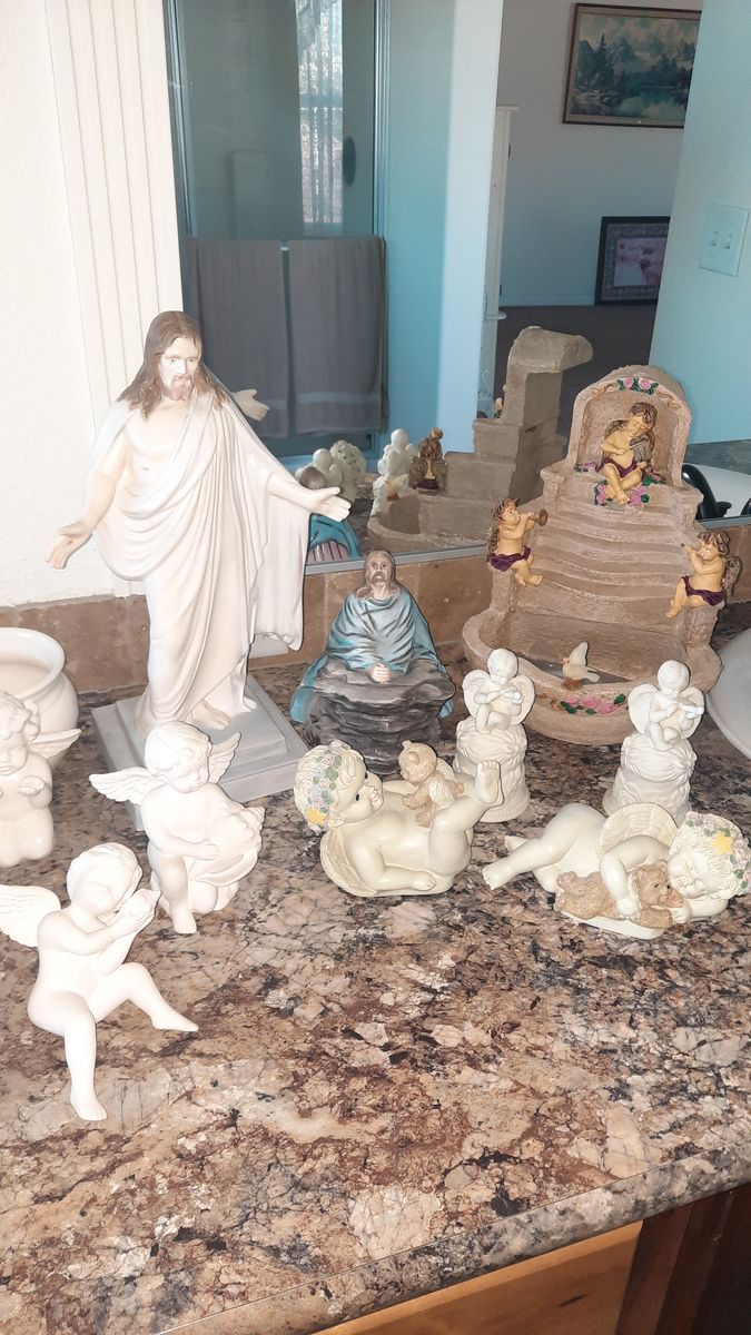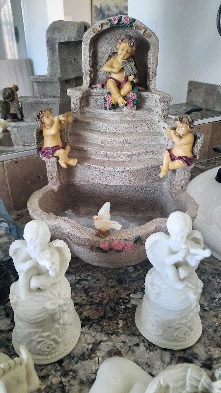 A heavenly collection includes water fall that needs a pump, two music angels, two shelf sitting angels, and several other angels to complete this collection. Asking $75 for the entire collection. Not available on Saturdays Cash and carry only