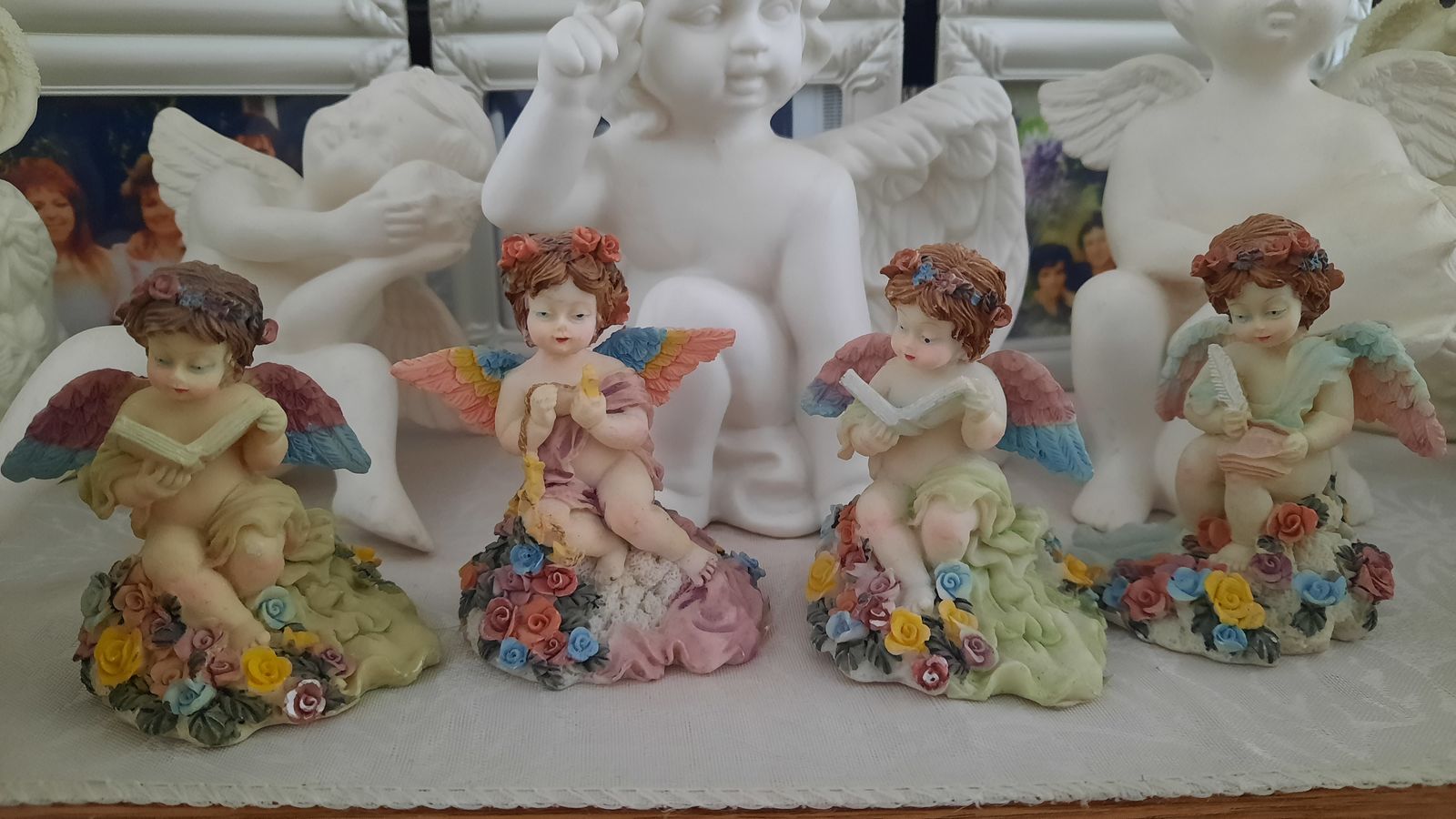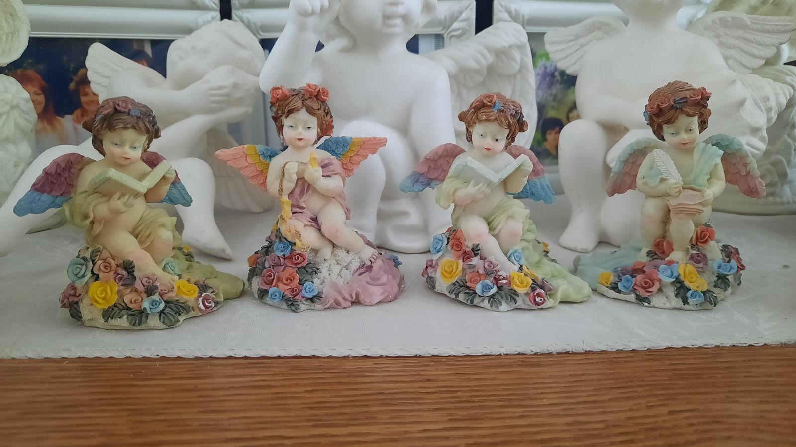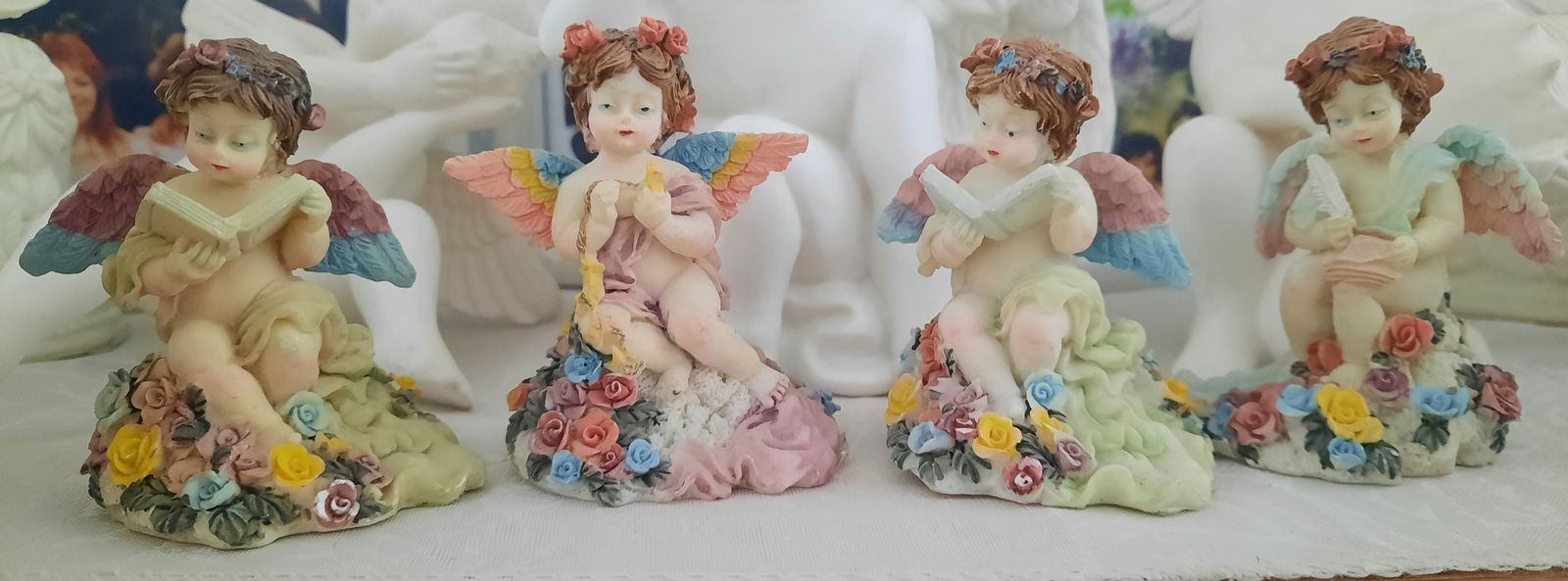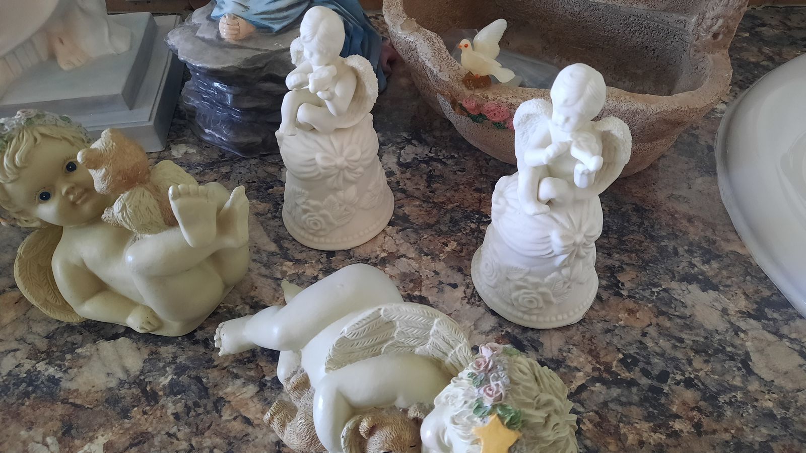 A heavenly collection includes water fall that needs a pump, two music angels, two shelf sitting angels, and several other angels to complete this collection. Asking $75 for the entire collection. Not available on Saturdays Cash and carry only