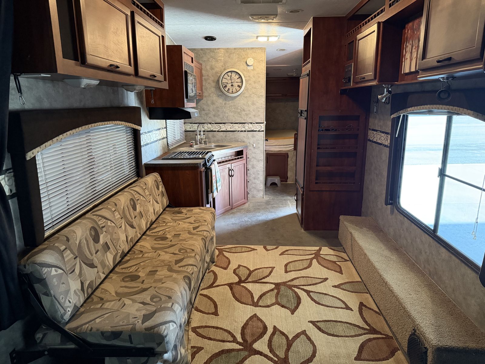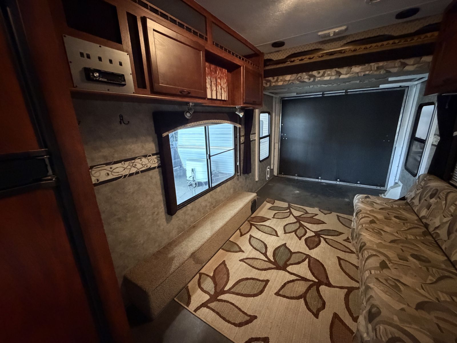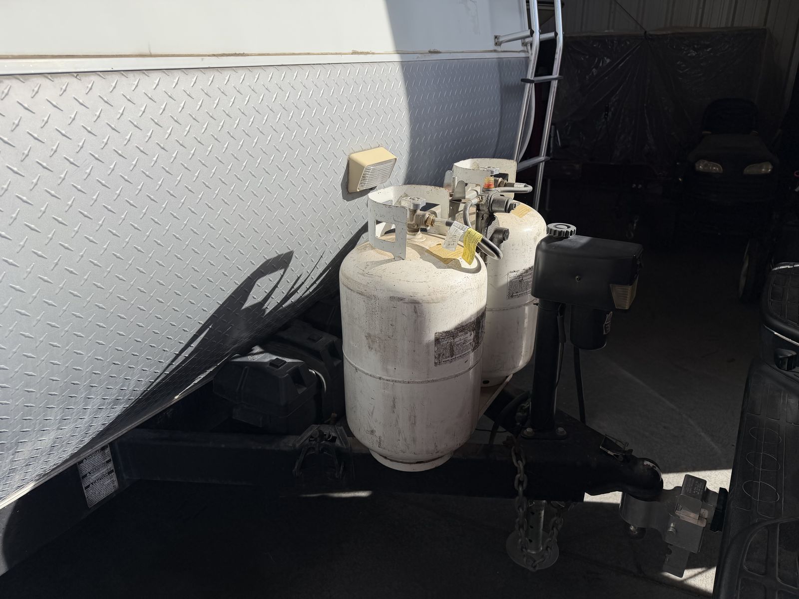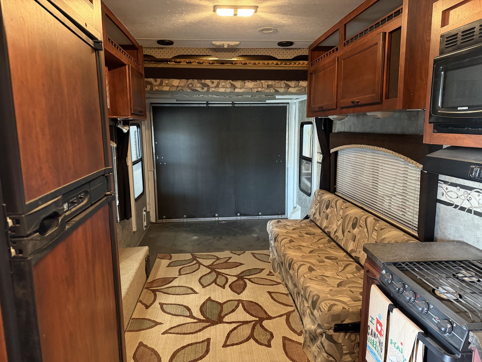 Vortex toy hauler camp trailer. Has brand new tires put on today. This is a great camp trailer, has 3 queen beds. 1 up front and a set of bunks in the rear. Has a Onan generator that works great! The inside is clean and very nice! Solar panel for batteries. No leaks.