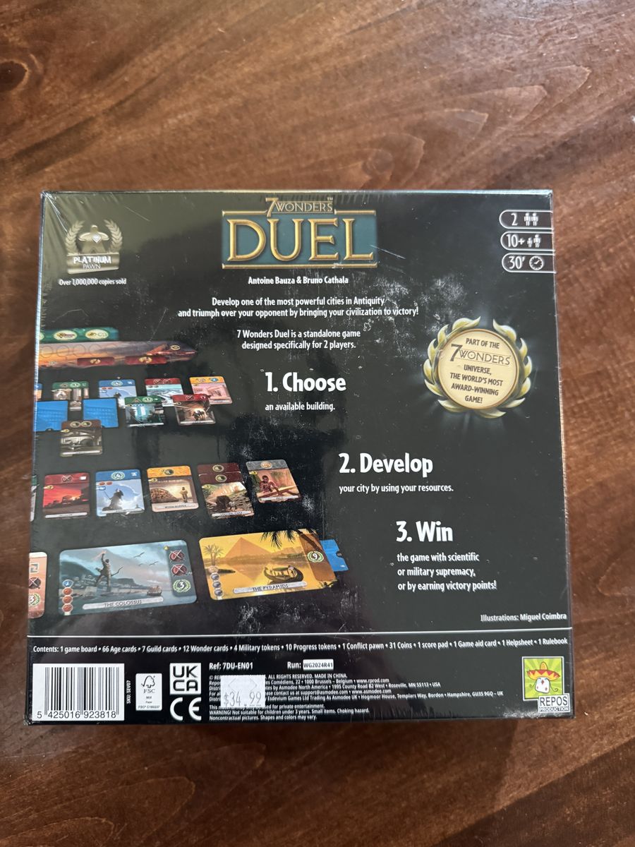 In many ways 7 Wonders Duel resembles its parent game 7 Wonders. Over three ages, players acquire cards that provide resources or advance their military or scientific development in order to develop a civilization and complete wonders. What's different about 7 Wonders Duel is that, as the title suggests, the game is solely for two players.