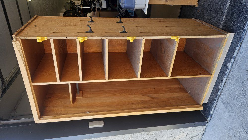ZelleOBO. Great for garage storage. about 6 ft High 3 ft wide and 2 ft deep. it's a little rough, but great for some storage.