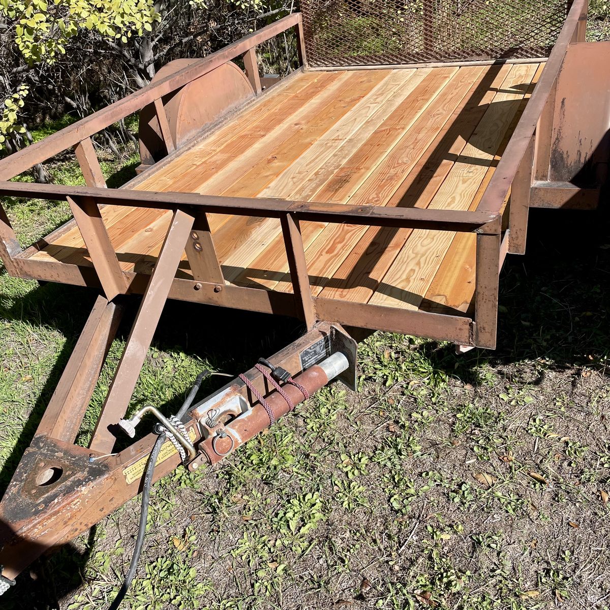 Big Tex heavy duty, 5 x 8 utility or UTV trailer, good tires, new deck, new lights, rear ramp, 3400 lb. axel, it is not rusty color is brown paint. 1,000 OBO text is best.
