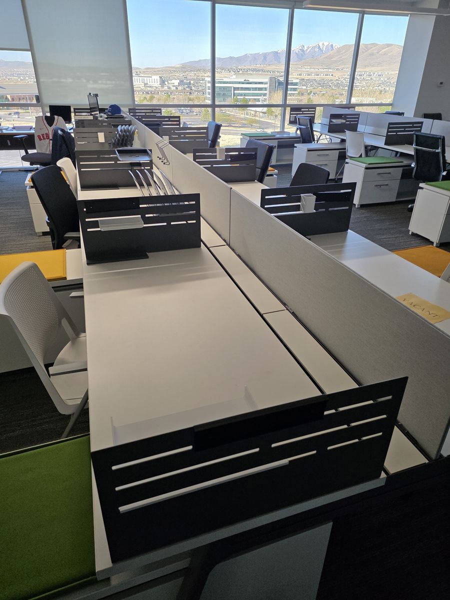 30”x60” benching stations with 48” return by Haworth. 24 stations available.