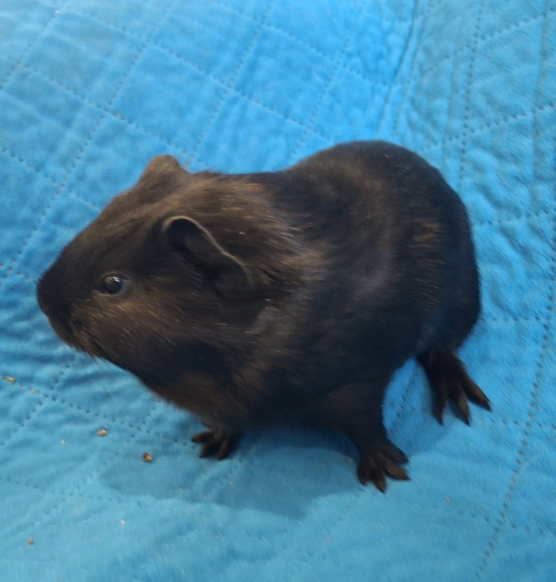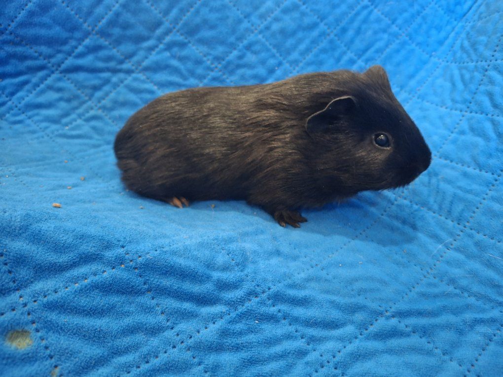 Ebony is a female guinea pig just weaned. she is mixed breed, mostly black with small tam speckles. she is kid friendly and is in need of a forever home.