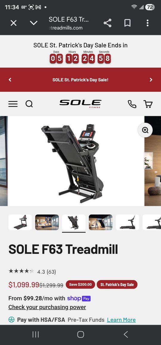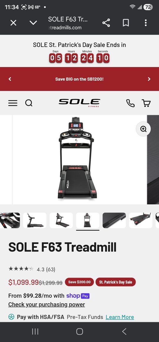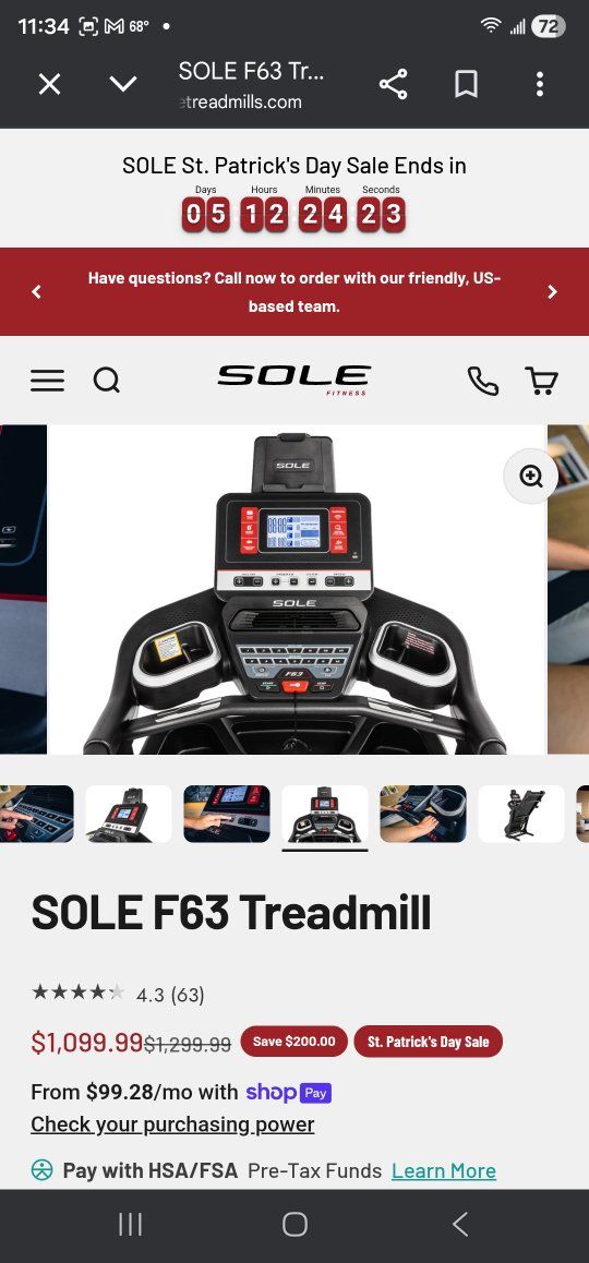 CashAppBRAND NEW Sole F63 Treadmill – Still in Box (Moving Sale!)