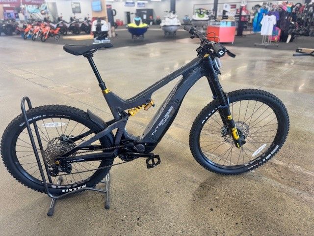 The 2022 Intense Tazer MX Pro is a high-performance carbon fiber electric enduro mountain bike designed with motocross-inspired handling. Featuring a "mullet" setup (29" front/27.5" rear wheels), it utilizes a Shimano EP800 motor and Öhlins suspension to deliver 170mm front and 155mm rear travel for aggressive trail riding!