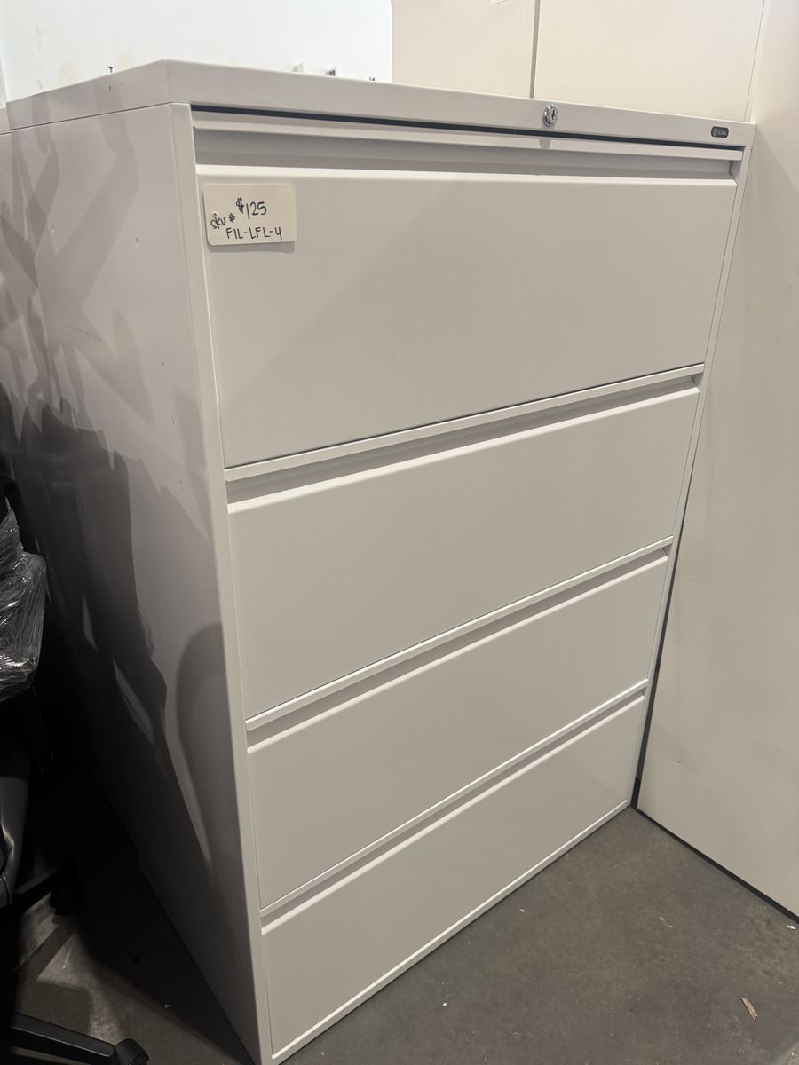 Office storage, 4-drawer lateral file by Global. 52”h x 36”w x 19 1/4”d. 4 file units available.