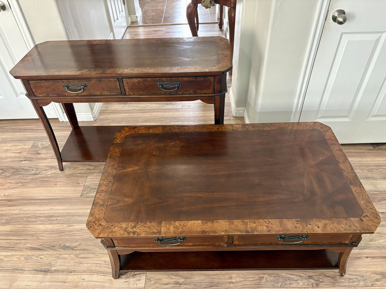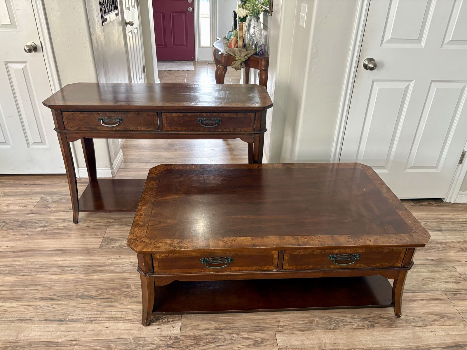 VenmoLiberty Coffee table and matching Sofa Table. Made of real wood and super sturdy. Some daily wear & scratches, but nothing major at all. $100 each