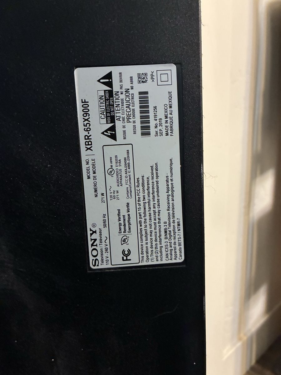 Tech Specs Model: XBR-65X900F (Manufactured Sept 2019)