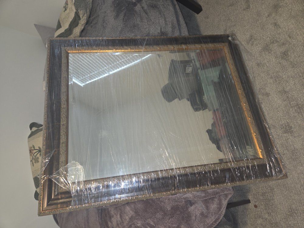 VenmoGorgeous gold and brown tones. really pretty and unique. its a solid mirror, very sturdy. its about 3ft by 4 ft I will deliver if u need.