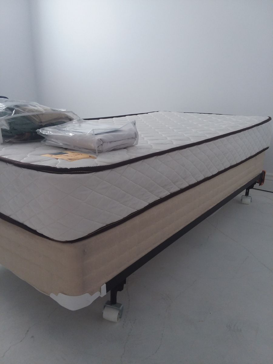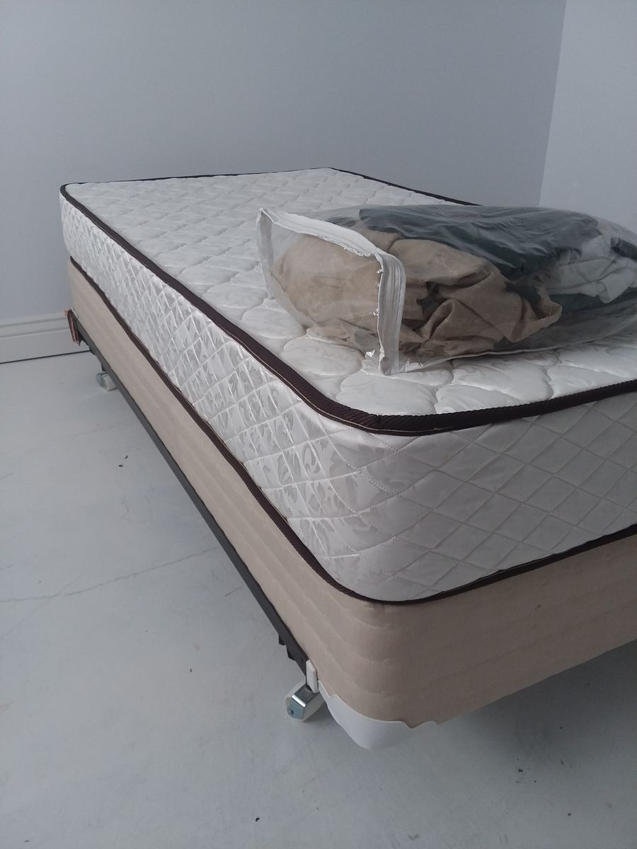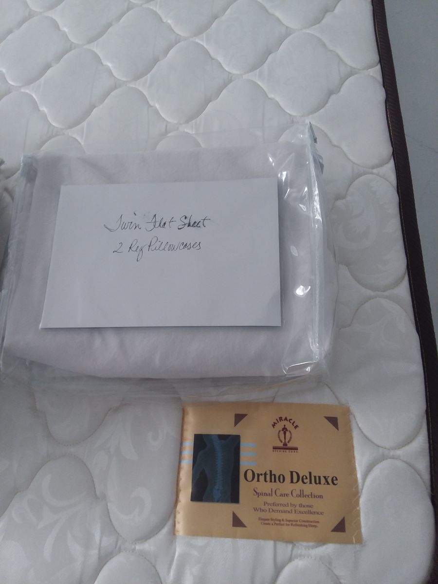 Twin bed with box springs, mattress, frame with two sets of sheets. $100.00 OBO.