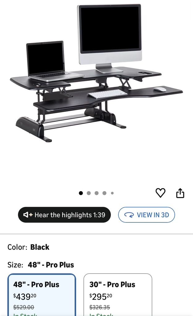 VenmoThese are the industry leaders of standing desks. These desks costs about $450 brand new and is the largest or the VariDesk line. This desk is gently used and is in great shape. Selling for $100 obo. Text me if interested.