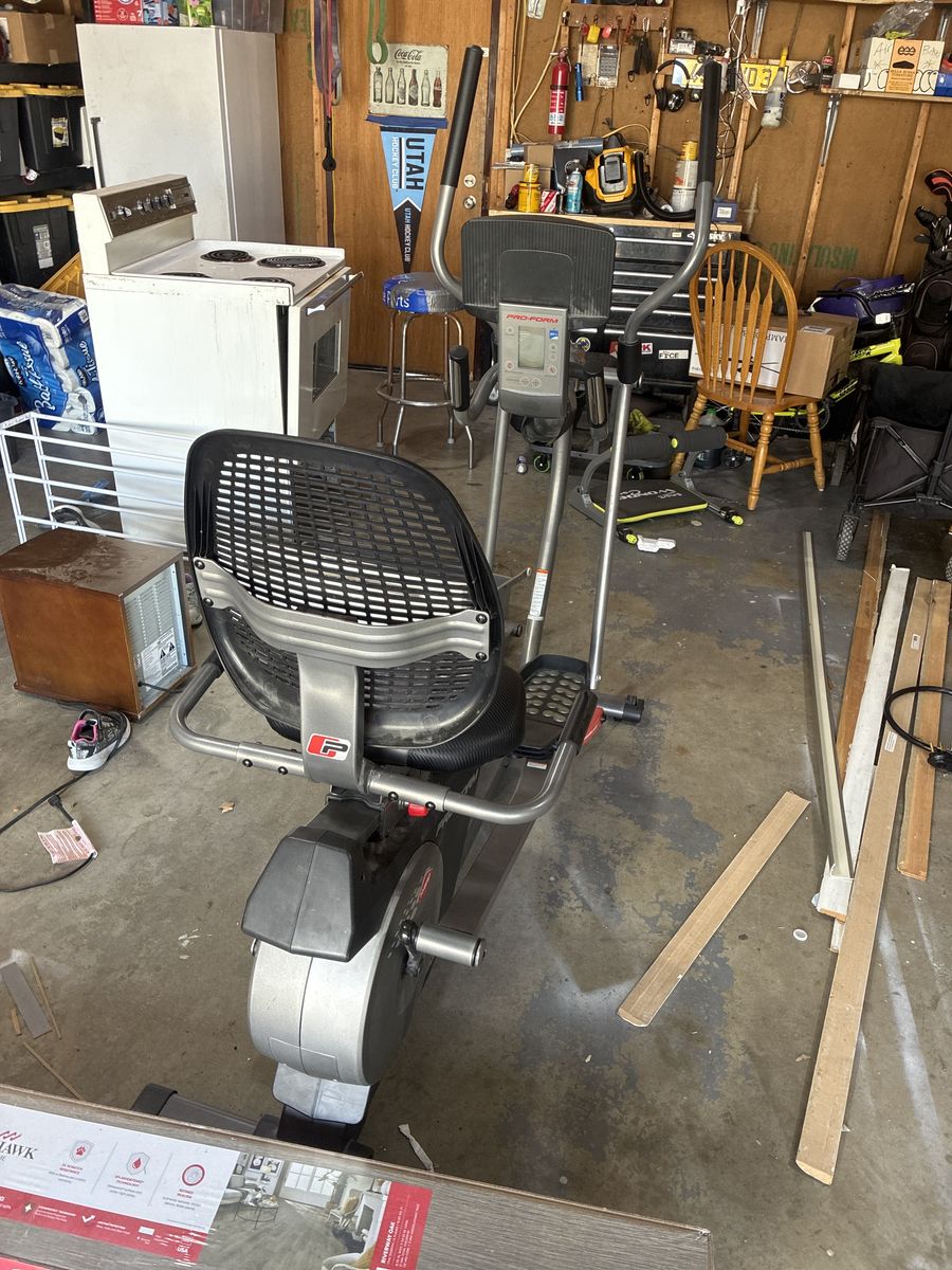 This is a newer pro form elliptical hybrid seated bike and elliptical for sale. Need it gone