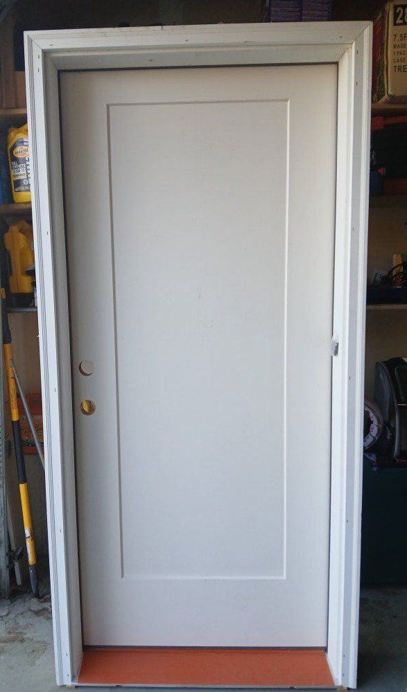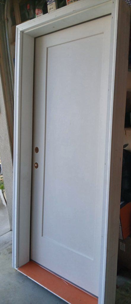 PayPalBrand New Ext. Door 3/0 x 6/8 fiberglass single panel. Prehung. Right hand inswing. Willing to take best offer!