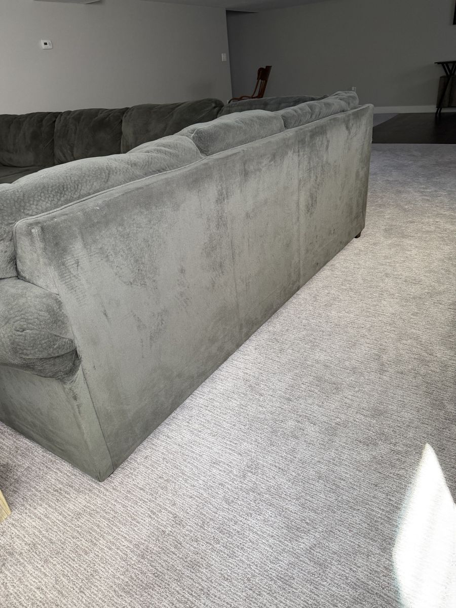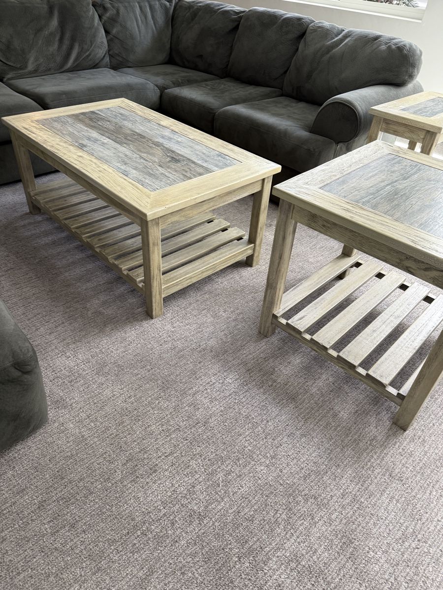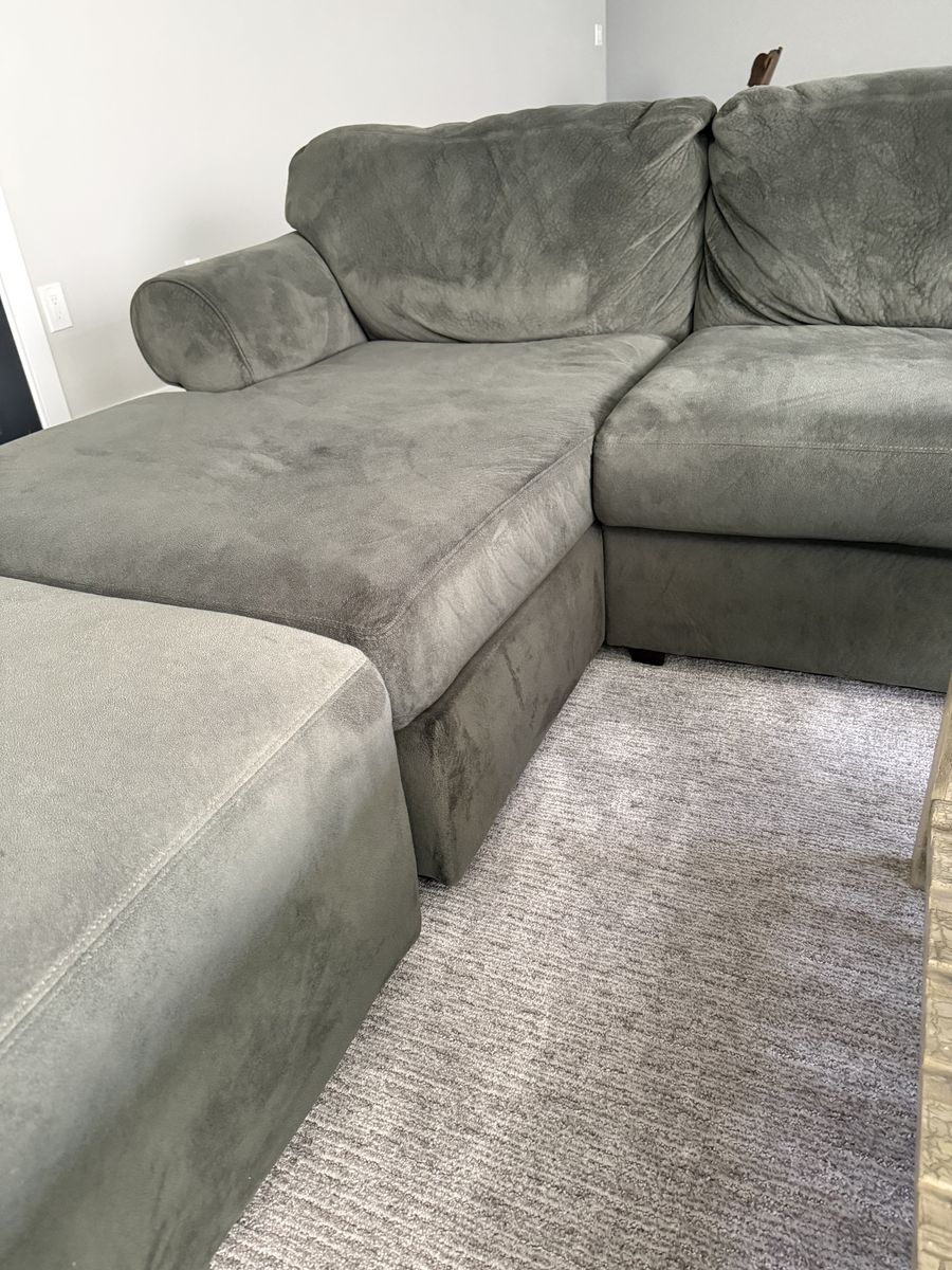 Venmo4 piece sectional sofa and three tables for sale. Sofa is pewter, in good shape. No smoking, sofa is clean. tables also in good condition. Dimensions: 32" high, 39" deep, couch is 91 " long, Chase lounge is 62" long, ottoman is 40x38".