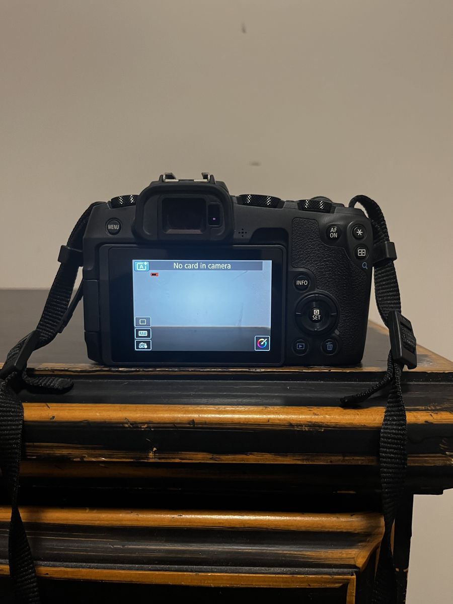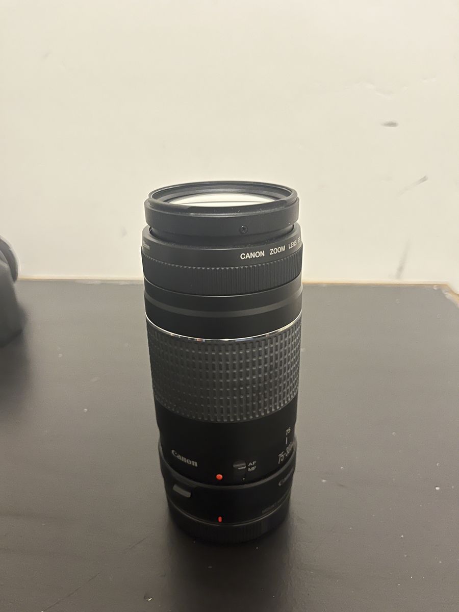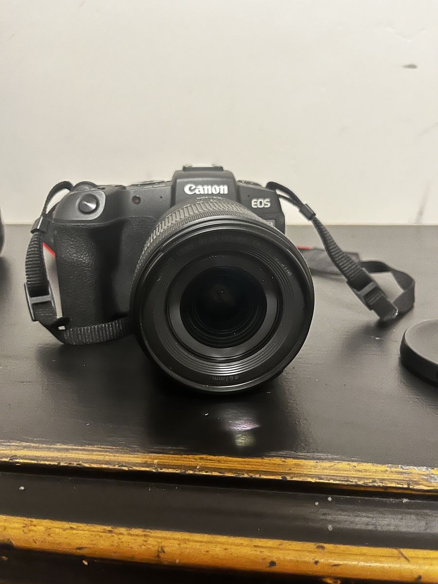 VenmoCannon eos rp full frame mirrorless camera body and kit lens. a cannon EF 75-300 mm f/4-5.6 zoom telephoto lens and a cannon EF- RF lens adapter. One battery and charger
