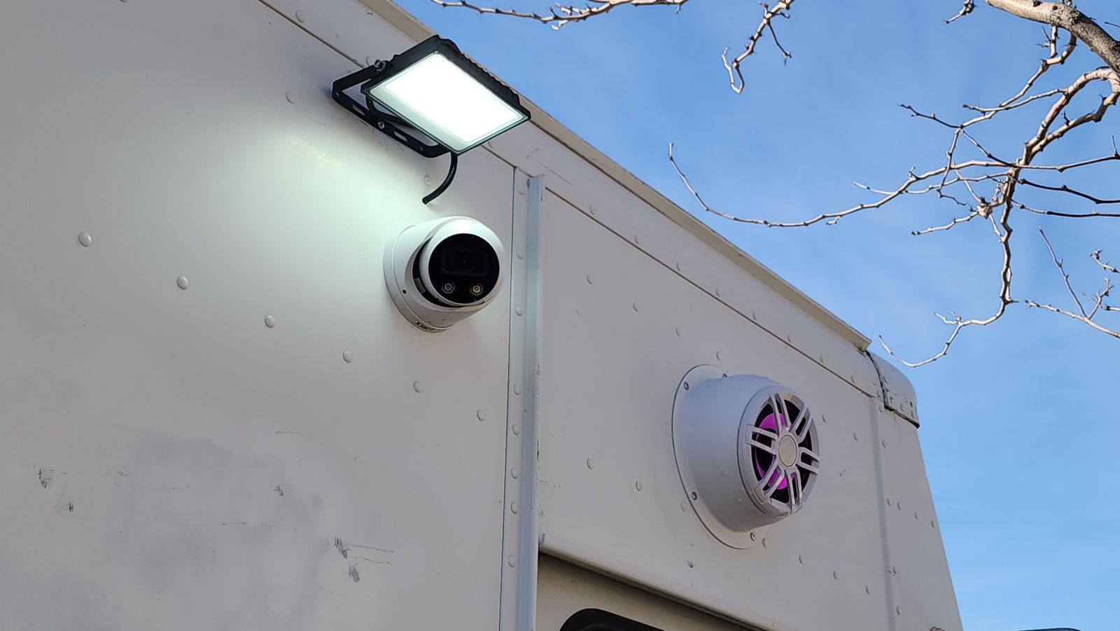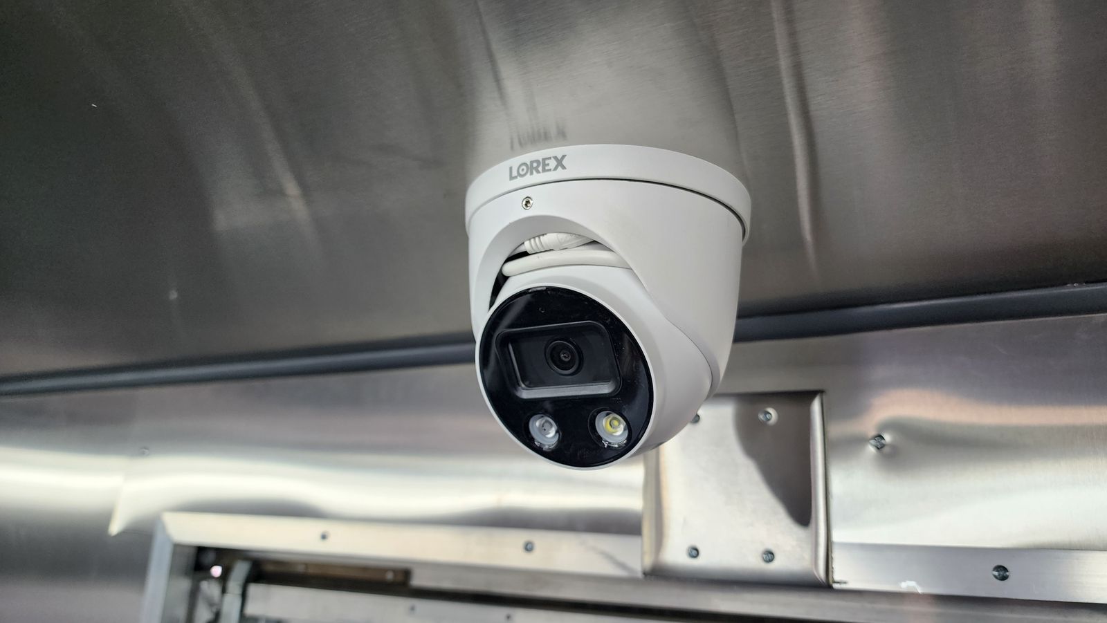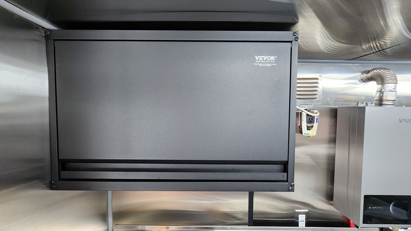 • Always-on rear-view camera with 7" monitor • Hard-wired Type-S dash cam with 128GB storage • 6-camera Lorex 4K hard-wired surveillance system with 27" monitor (remote access) • Commercial metal cabinet for electronics and monitoring equipment • Exterior LED lighting on all sides of the truck and both sides of the service window • 55" exterior digital menu display • (2) Fusion marine-grade outdoor speakers with LED lighting oaired with a sound amplifier to call out orders • Undercarriage jellyfish-style LED lighting – perfect for night events • Rain-sensing ventilation fan • 60" × 36" service window with sliding screen doors
