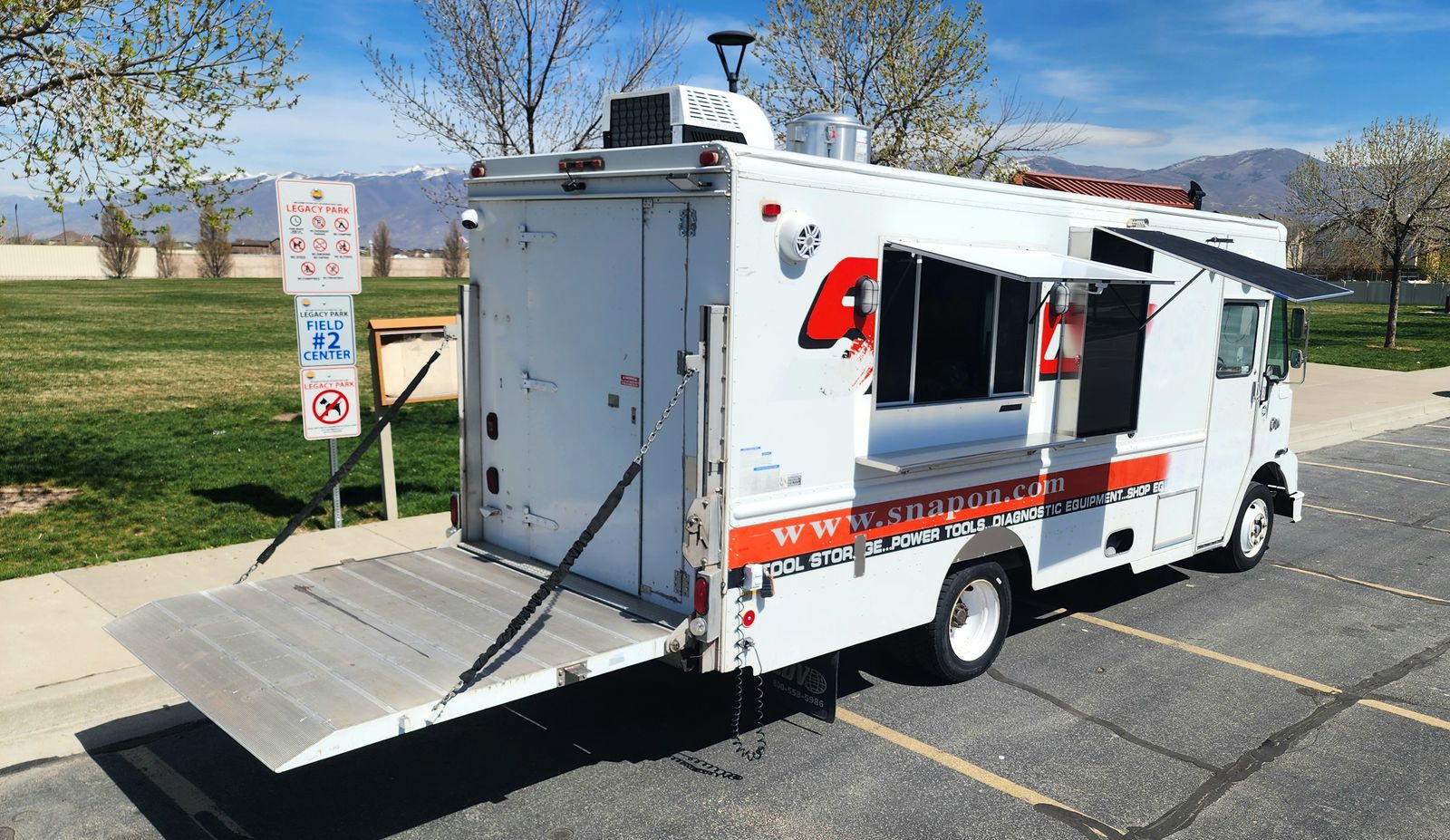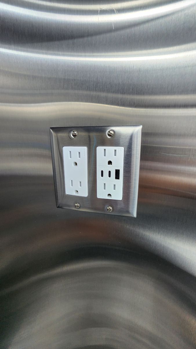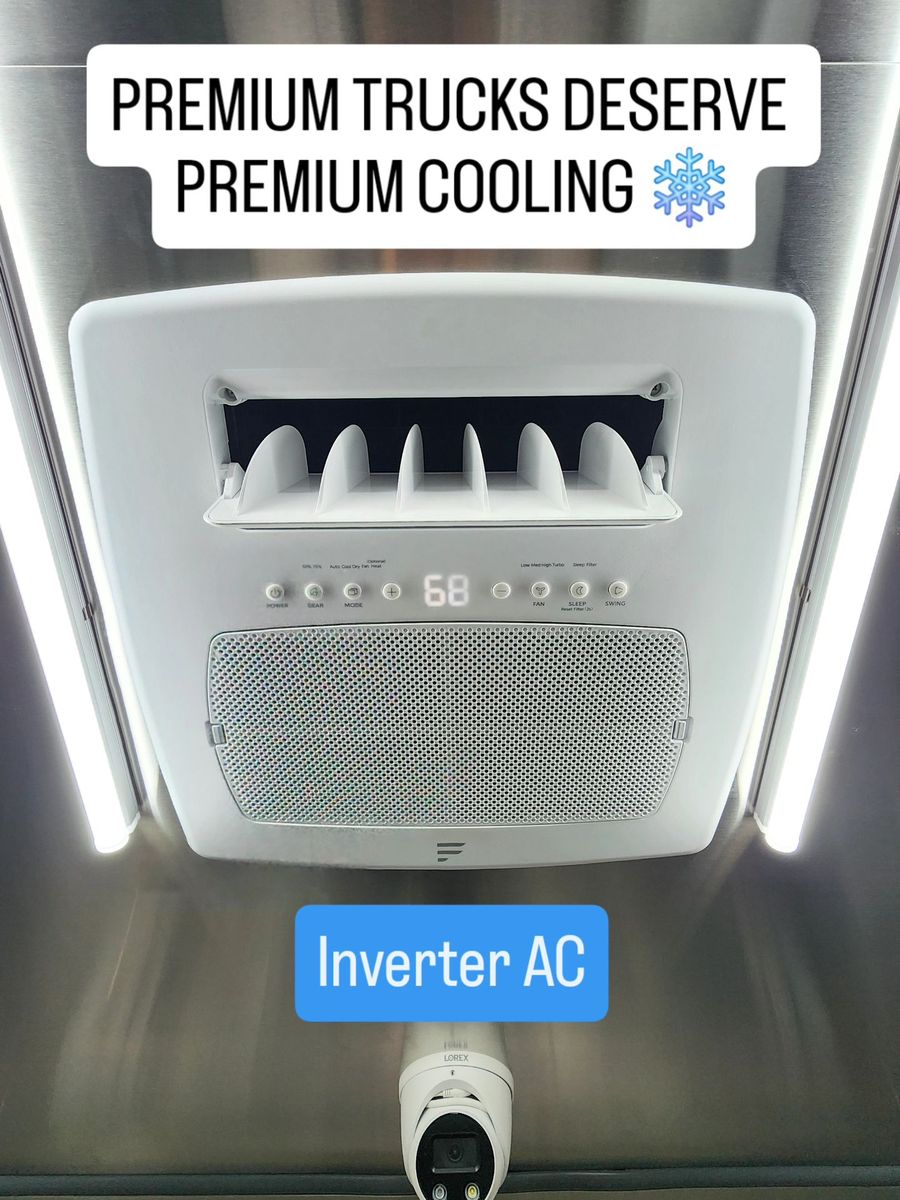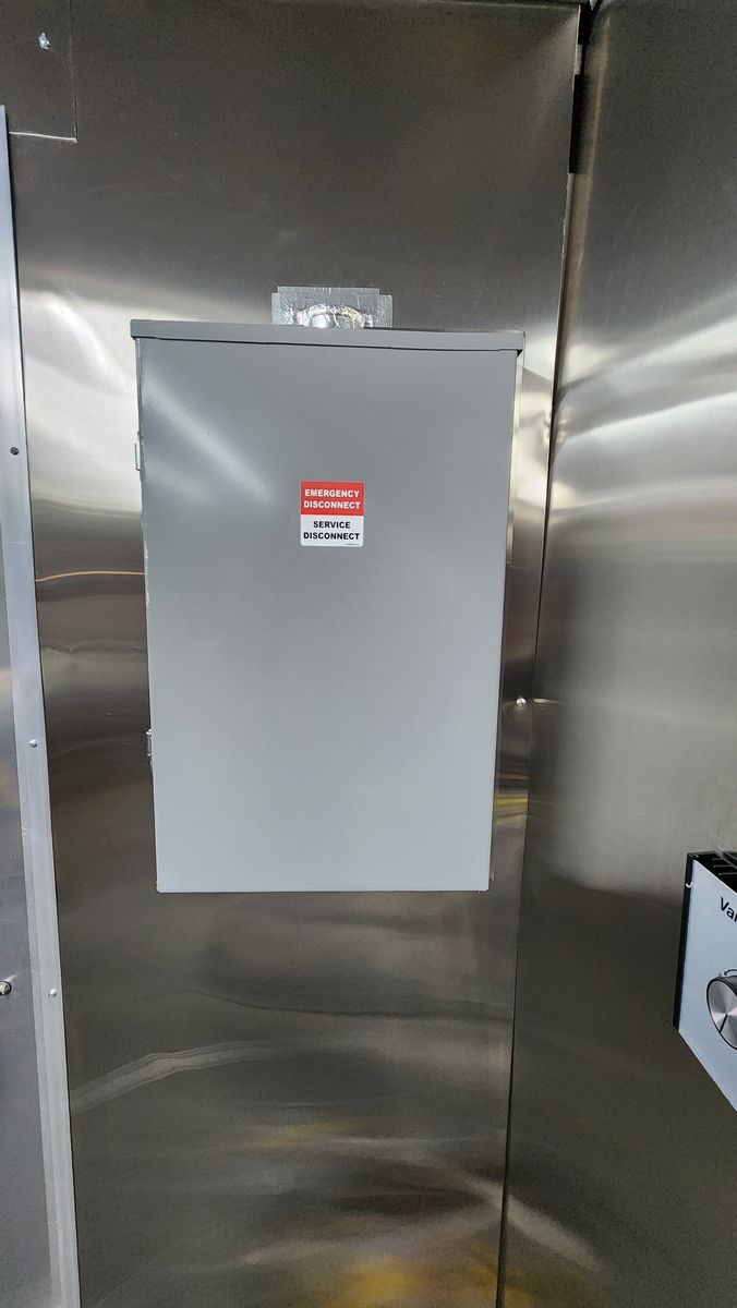 • 50-amp shore power inlet • 200-amp, 8-space commercial breaker panel with main disconnect • 10-gauge wiring throughout • Furrion 18,000 BTU inverter air conditioner • (2) 9-ft interior LED light strips • (2) USB-enabled outlets for POS systems, in addition to traditional outlets through out the truck