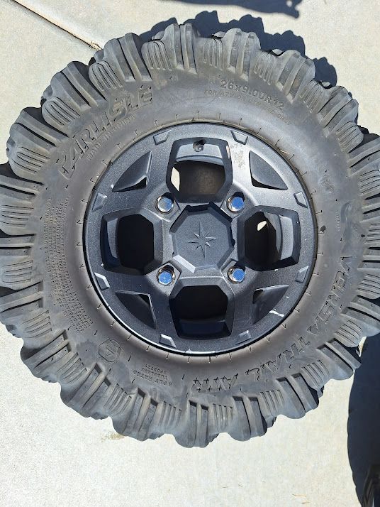 4 Carlisle Versa Trail UTV Tires and Rims size 26 X 9.00 R12 . . 6 Ply rated Tubeless