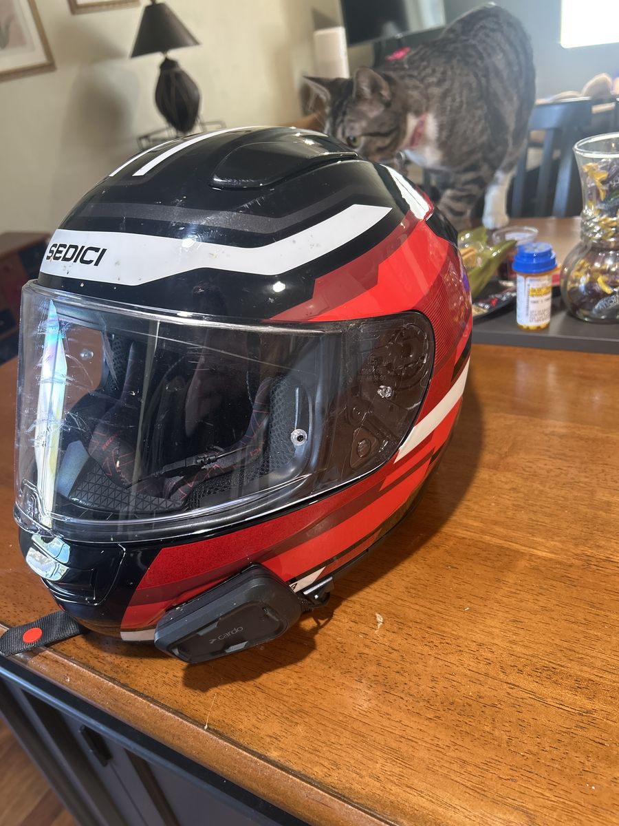 VenmoA motorcycle helmet, bought it in 2024. Bought a cardo for it. Only used for a couple of months (~3) It has a few minor scratches, will clean the visor and helmet before arrival.