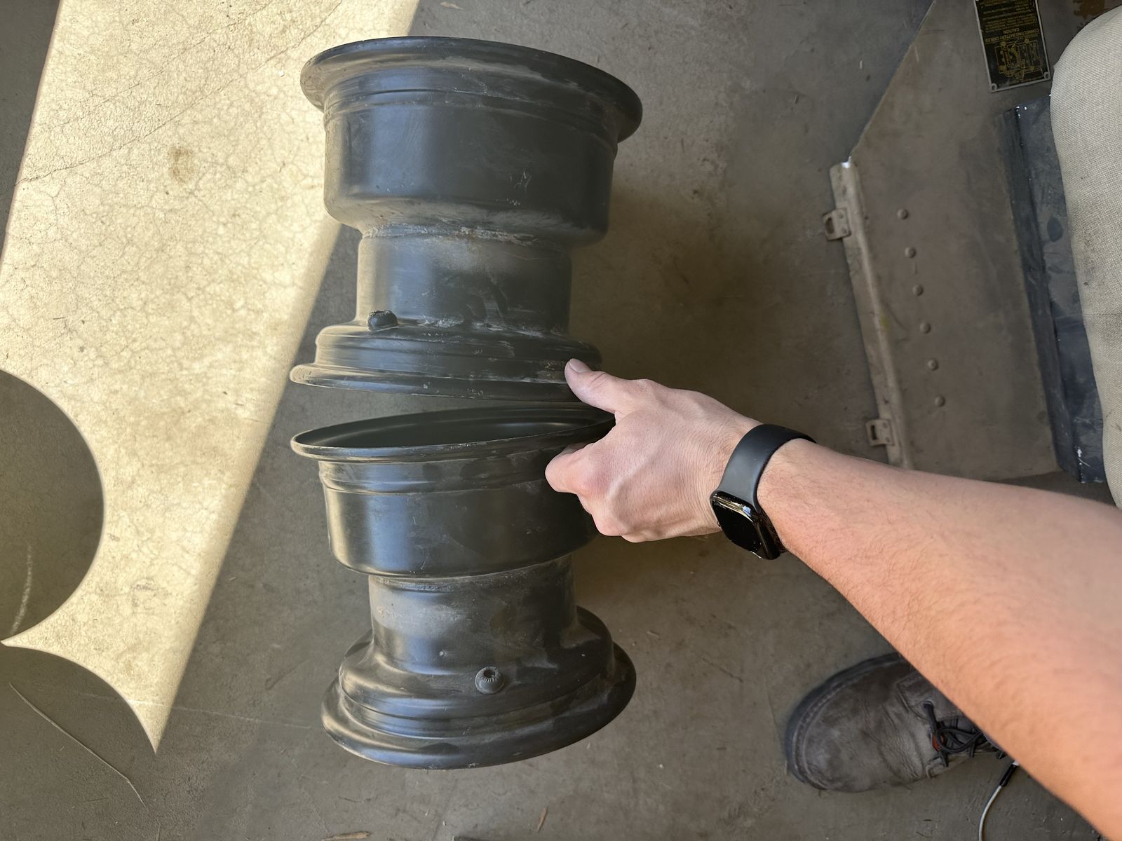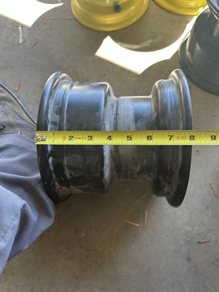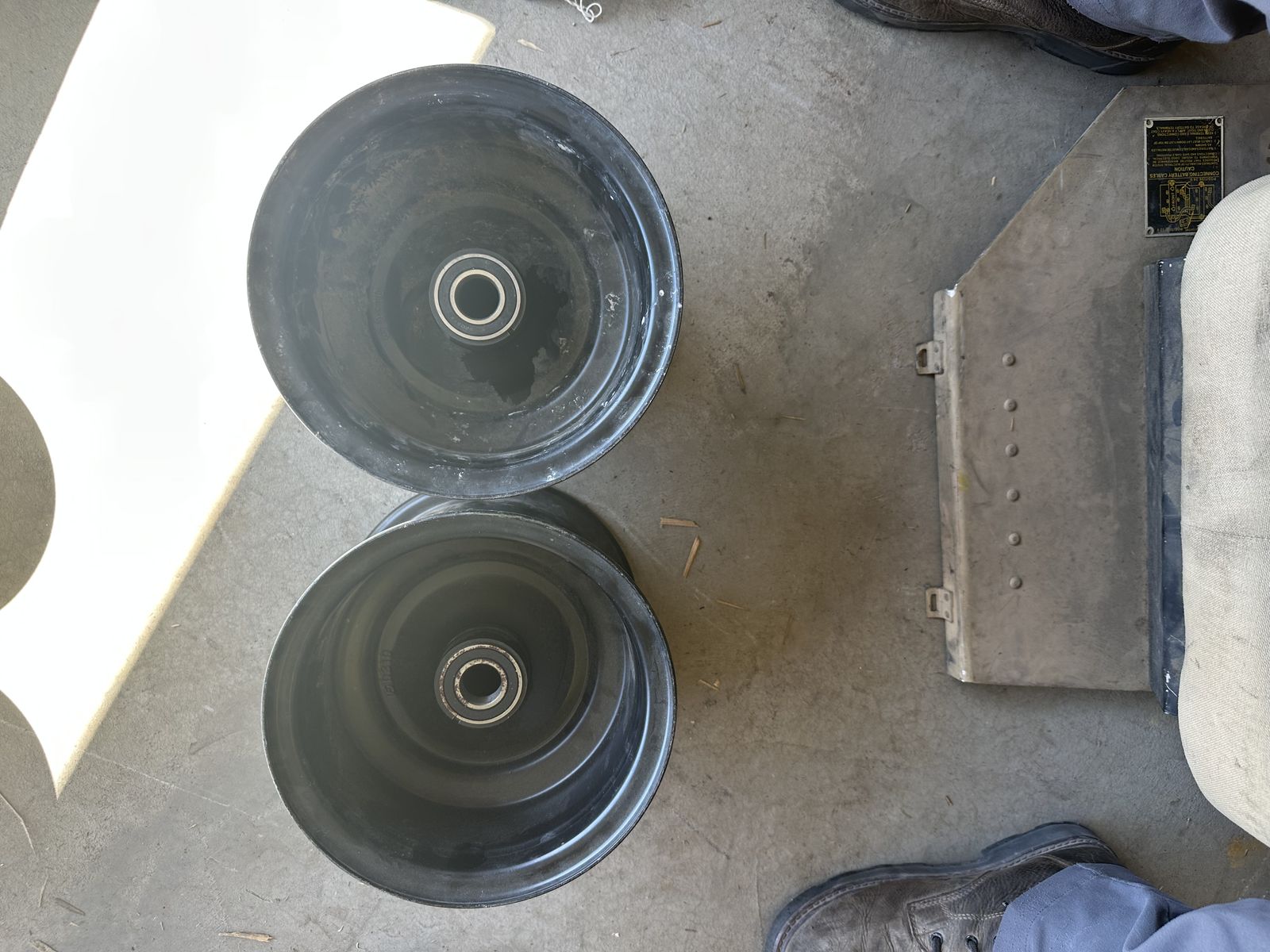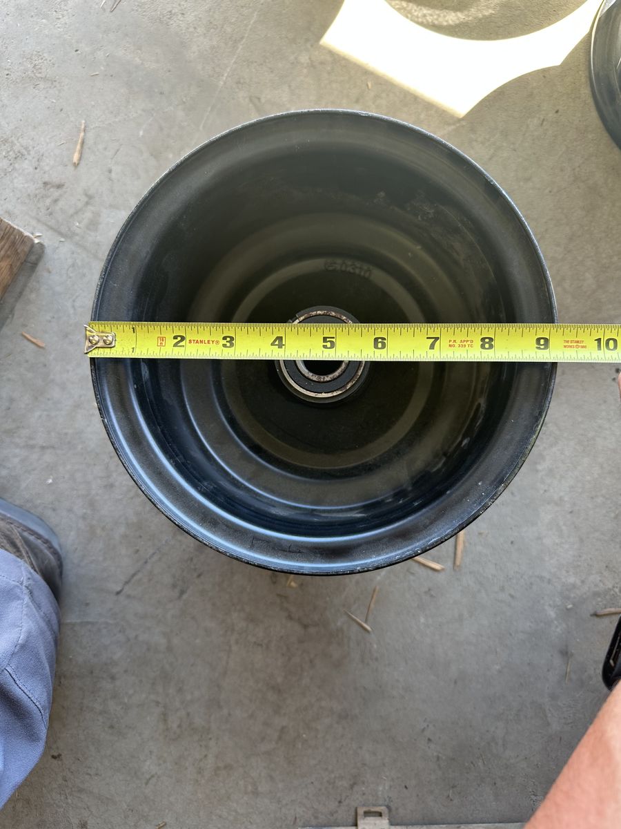 Small wheels. Believe to be for a lawn mower or other small trailers and yard equipment.