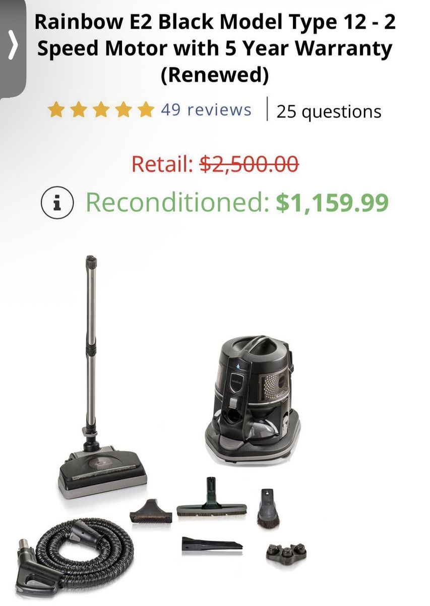 Rainbow vacuum that uses water as the filter. Really great machine. Comes with all accessories, including a carpet, cleaning attachment known as the Aquamate.