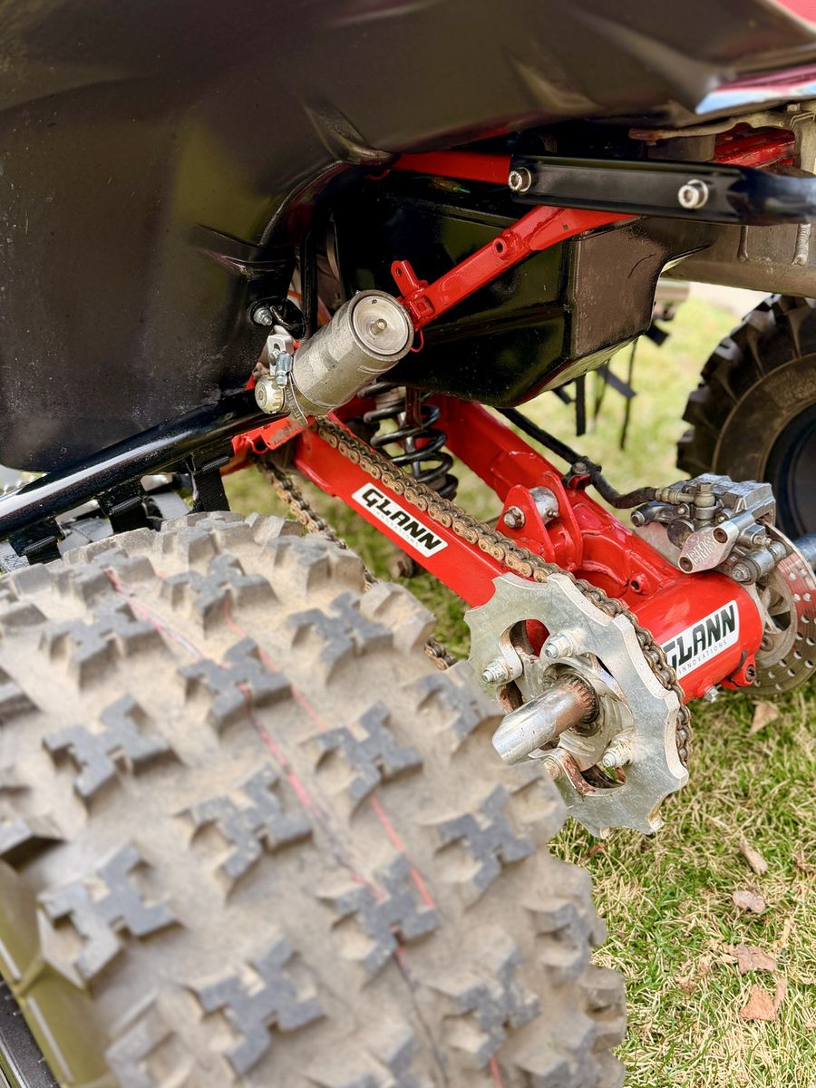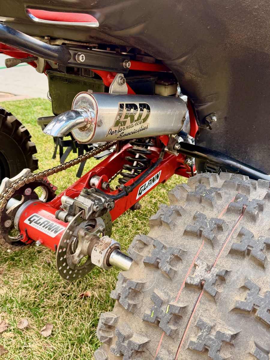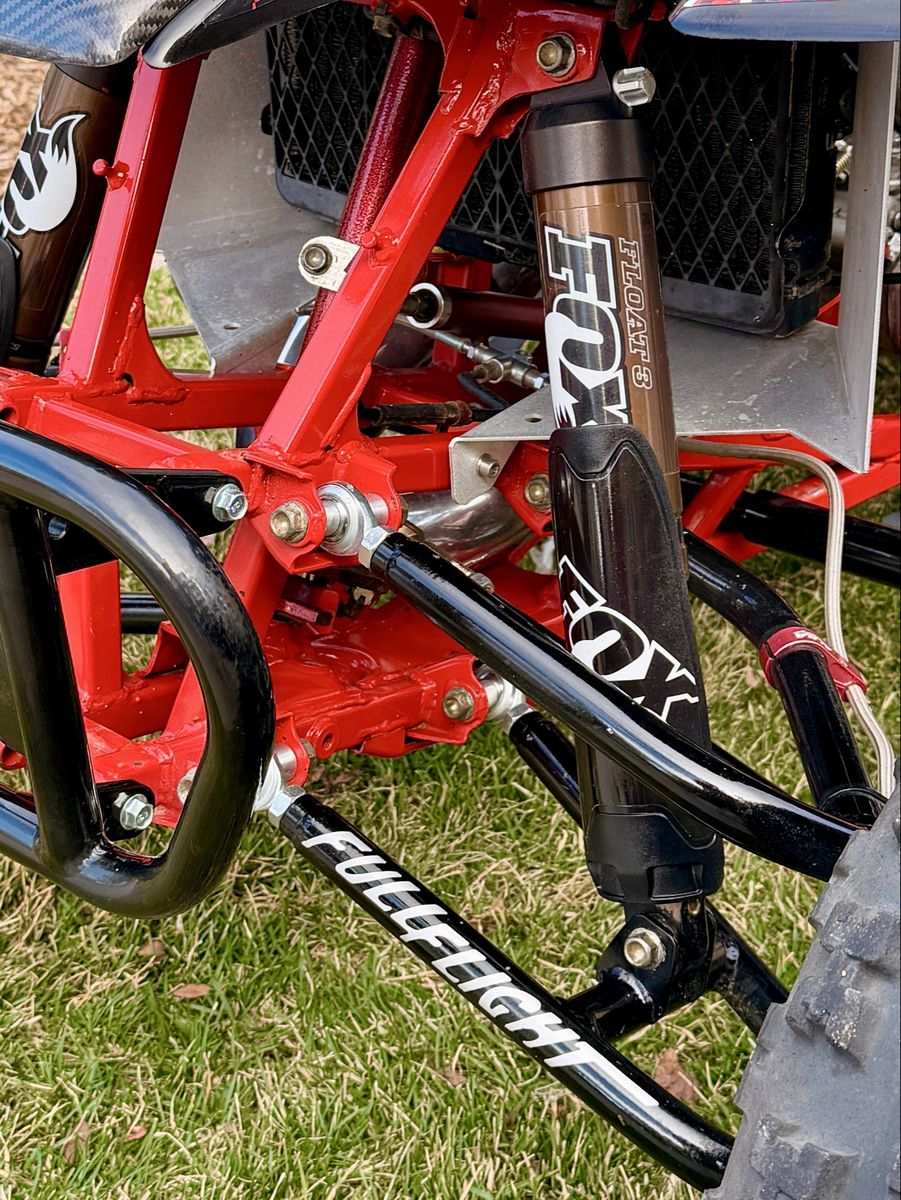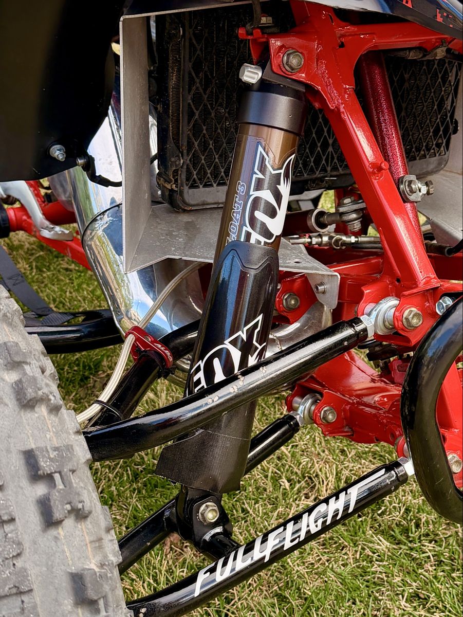 SUSPENSION— Fox Floats 3, front Full flight a-arms, +2 wide +1 long Durablue, adjustable axle Anti-fade nut JD Racing, rotor guard Glann Digger, sprocket guard UPP, case saver ALBA, steel brake lines