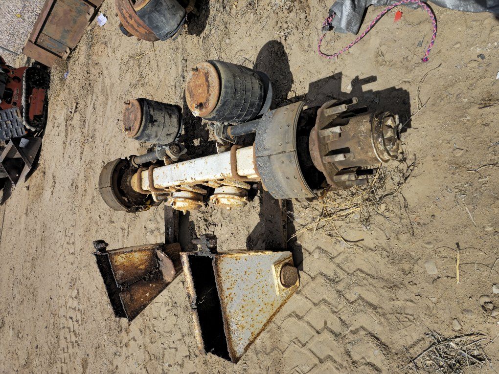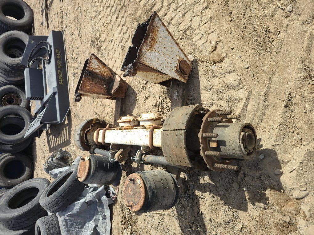 Tandem axle set removed from pneumatic trailer