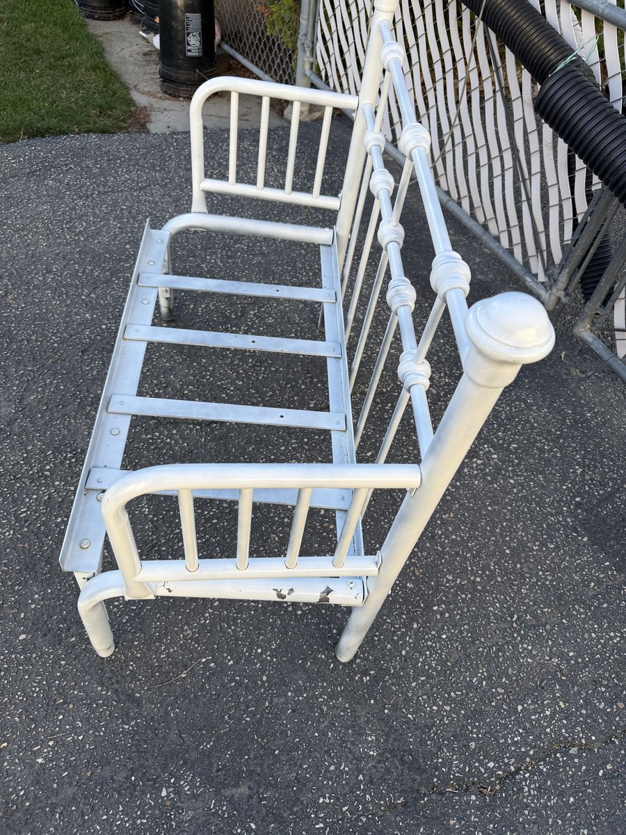 Old Metal Patio Bench 40” Long Back 35” high Seat height 14” Good Condition See Pics