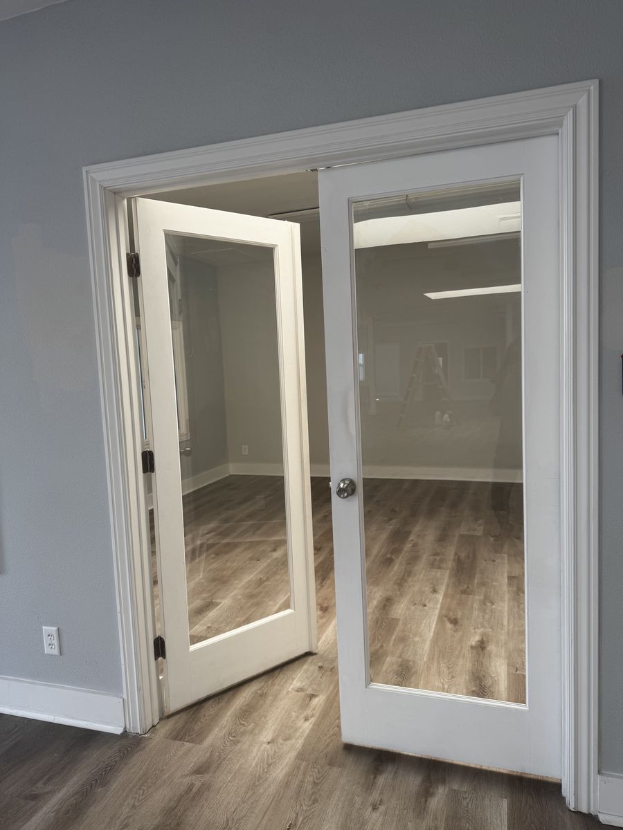 2 offices and a LARGE open space. Shared building.