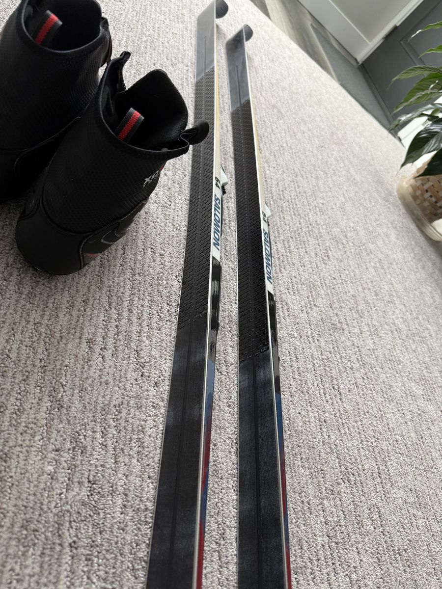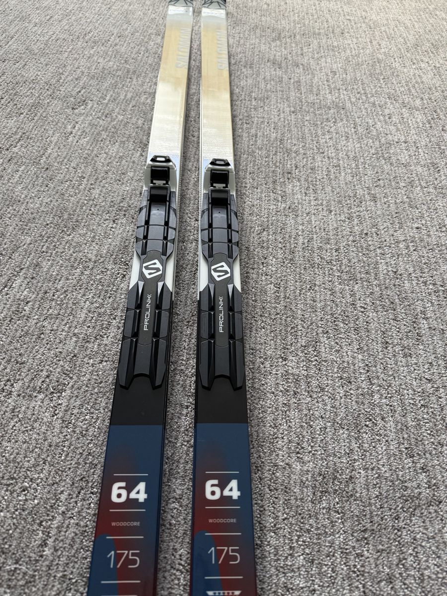 VenmoSalomon cross country skis, size 175. Comes with 145/58" poles. Skis are wood core, steel edge Posigrip.